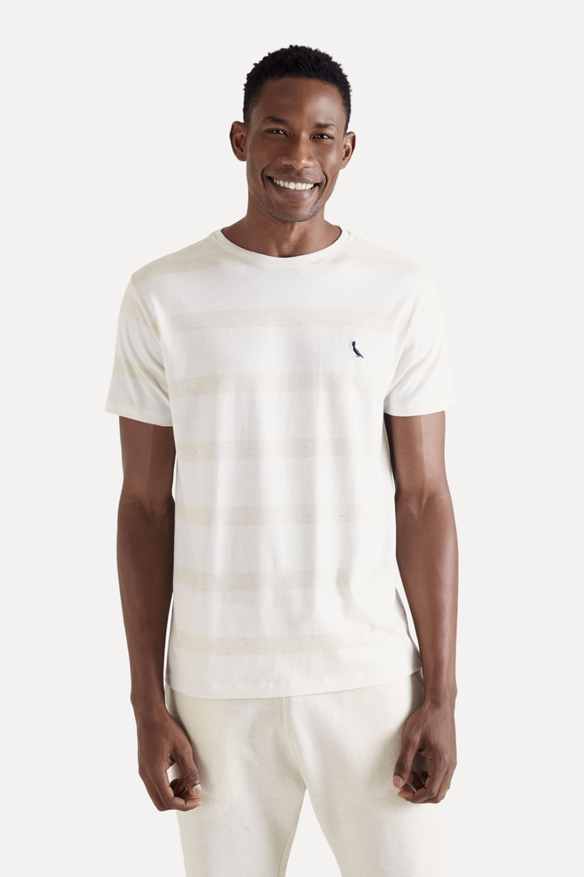 Um churrasquinho com sambinha mais tarde? Camiseta Listrada Joa, pode chegar! Sua composição permite que seus movimentos sejam livres, gerando um conforto sem comparações e ajuste perfeito em todos os formatos de corpo. Desenvolvemos uma camiseta masculina Reserva para você dançar, zoar e até trabalhar num dia mais casual. Listras bonitas assim até te fazem sorrir, fala sério. Produzido eticamente no Brasil. Comprando esta peça, você viabiliza cinco pratos de comida através do nosso programa 1P5P.