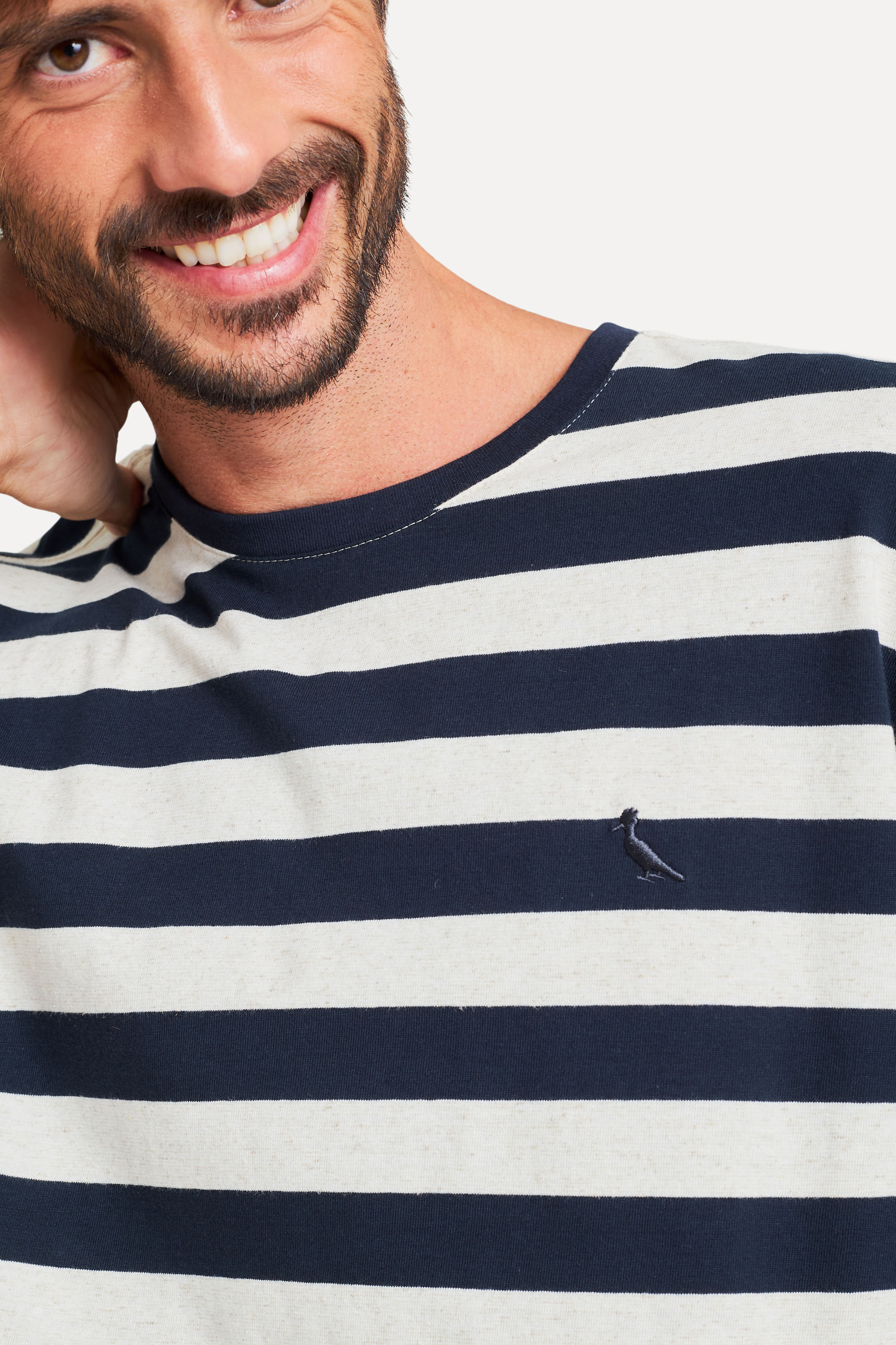 A Camiseta Listra Linho II da Reserva é perfeita para quem busca estilo e conforto em uma única peça. Sua modelagem é moderna e versátil, se adaptando a diferentes tipos de corpos. O tecido destaque é o linho, que além de ser leve e fresco, confere um toque de sofisticação ao visual. A camiseta possui listras em cores neutras, que são tendência da estação. Ideal para compor looks casuais, pode ser combinada com bermudas ou calças jeans. Aposte nessa camiseta para um visual despojado e cheio de personalidade. Comprando esta peça, você viabiliza cinco pratos de comida através do nosso Programa 1P5P. Produto produzido eticamente no Brasil.