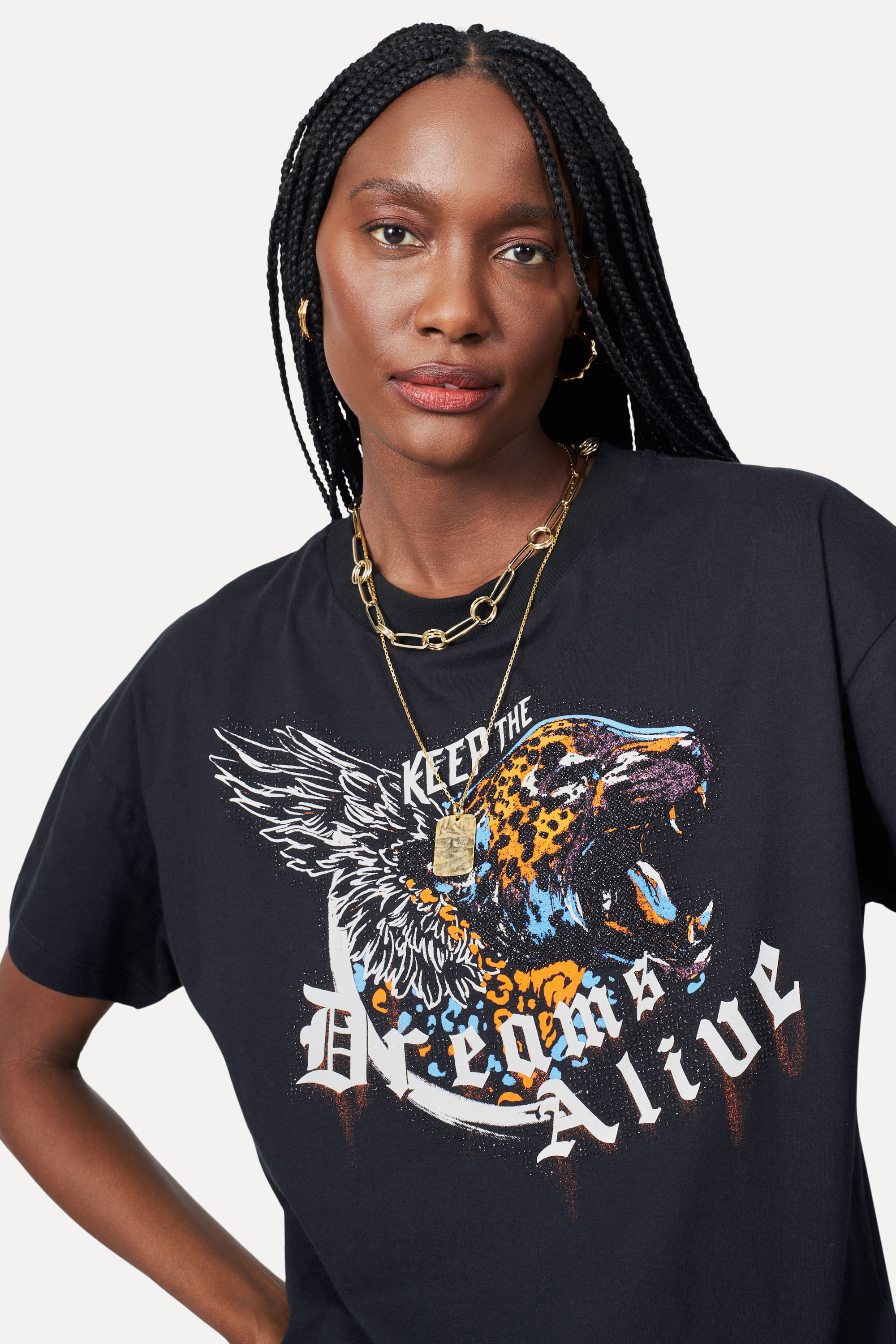 CAMISETA MALHA SILK DREAMS ALIVE. Comprando esta peça, você viabiliza cinco pratos de comida através do nosso Programa 1P5P. Camiseta produzida eticamente no Brasil.
