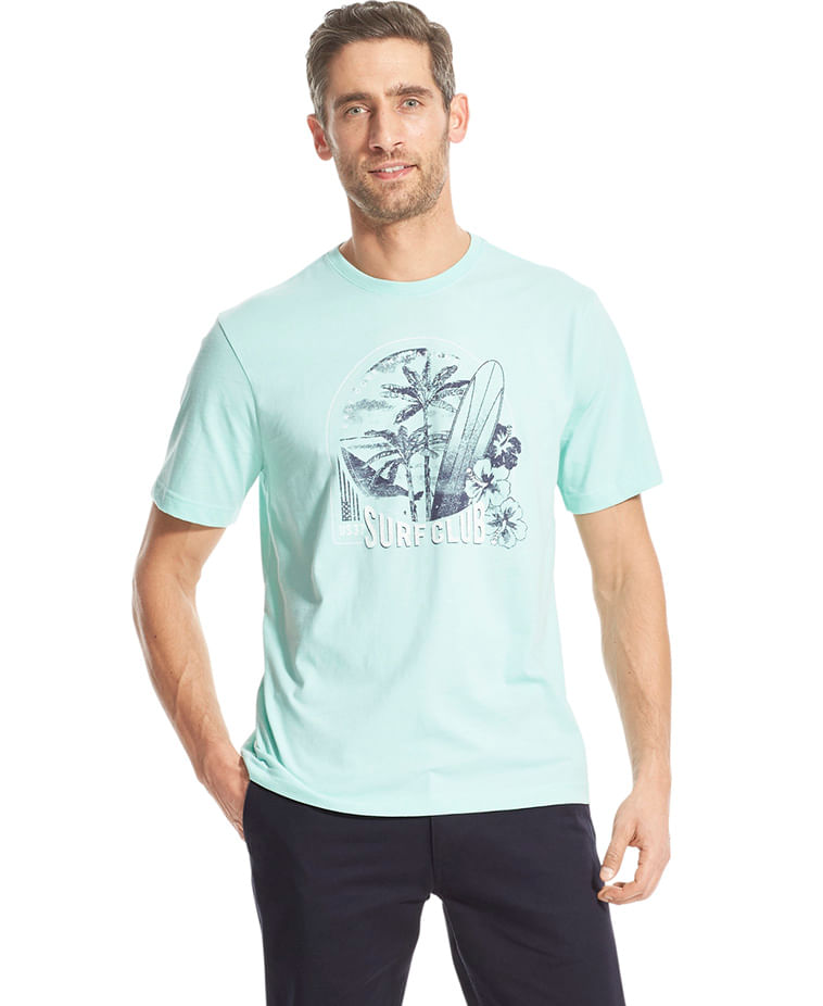 Camiseta Manga Curta Estampada Regular Masculino Verde Água Izod