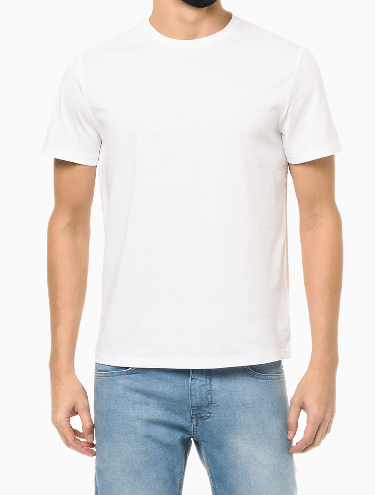 Em design refinado de malha azul marinho em ampla variedade de cores sazonais, a camiseta masculina básica de algodão pima Calvin Klein tem manga curta, decote careca e fios ultrafinos para ventilação e sensação respirável.