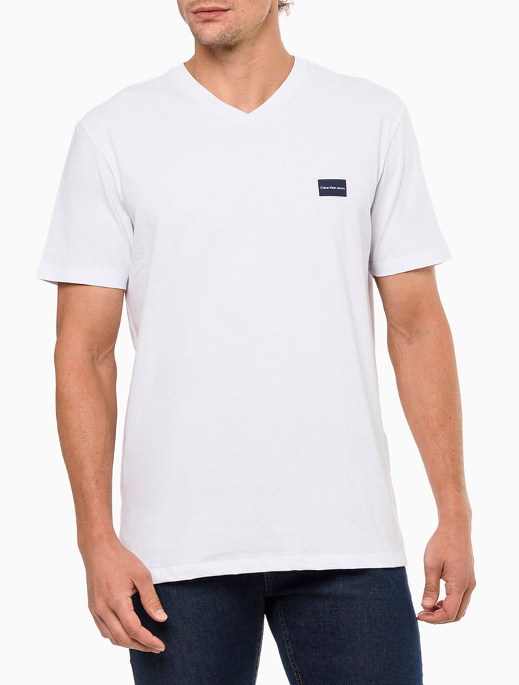 A Camiseta Masculina Calvin Klein oferece um toque suave e um ajuste perfeito que envolve seu corpo de forma natural. Feita com materiais de alta qualidade, você sentirá o conforto excepcional assim que vesti-la. Seu design minimalista e contemporâneo transmite uma imagem de casualidade refinada, perfeita para um look descontraído e elegante. A peça possui modelagem básica, tecido meia malha, manga curta, gola V e logo minimalista Calvin Klein Jeans no peito.