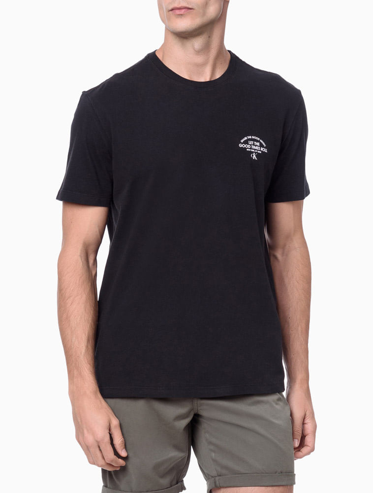A Camiseta Masculina Manga Curta Good Times Calvin Klein Jeans oferece um toque suave e um ajuste perfeito que envolve seu corpo de forma natural. Feita com materiais de alta qualidade, você sentirá o conforto excepcional assim que vesti-la. Seu design minimalista e contemporâneo transmite uma imagem de casualidade refinada, perfeita para um look descontraído e elegante. <br> <br> <i>CARACTERÍSTICAS</i> <hr> <br> • Manga Curta de Meia Malha <br> • Modelagem Básica<br> • Gola Ribana<br> • Confeccionada em Tecido de Algodão <br> • Estampa Exclusiva da Marca<br>
