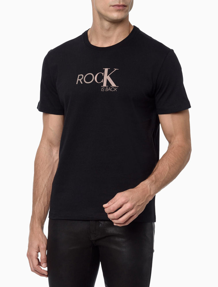 A Camiseta Masculina Manga Curta Rock Is Back Calvin Klein Jeans oferece um toque suave e um ajuste perfeito que envolve seu corpo de forma natural. Feita com materiais de alta qualidade, você sentirá o conforto excepcional assim que vesti-la. Seu design minimalista e contemporâneo transmite uma imagem de casualidade refinada, perfeita para um look descontraído e elegante. <br> <br> <i>CARACTERÍSTICAS</i> <hr> <br> • Manga Curta de Meia Malha <br> • Modelagem Básica<br> • Gola Ribana<br> • Confeccionada em Tecido de Algodão <br> • Estampa Frontal Exclusiva da Marca<br>