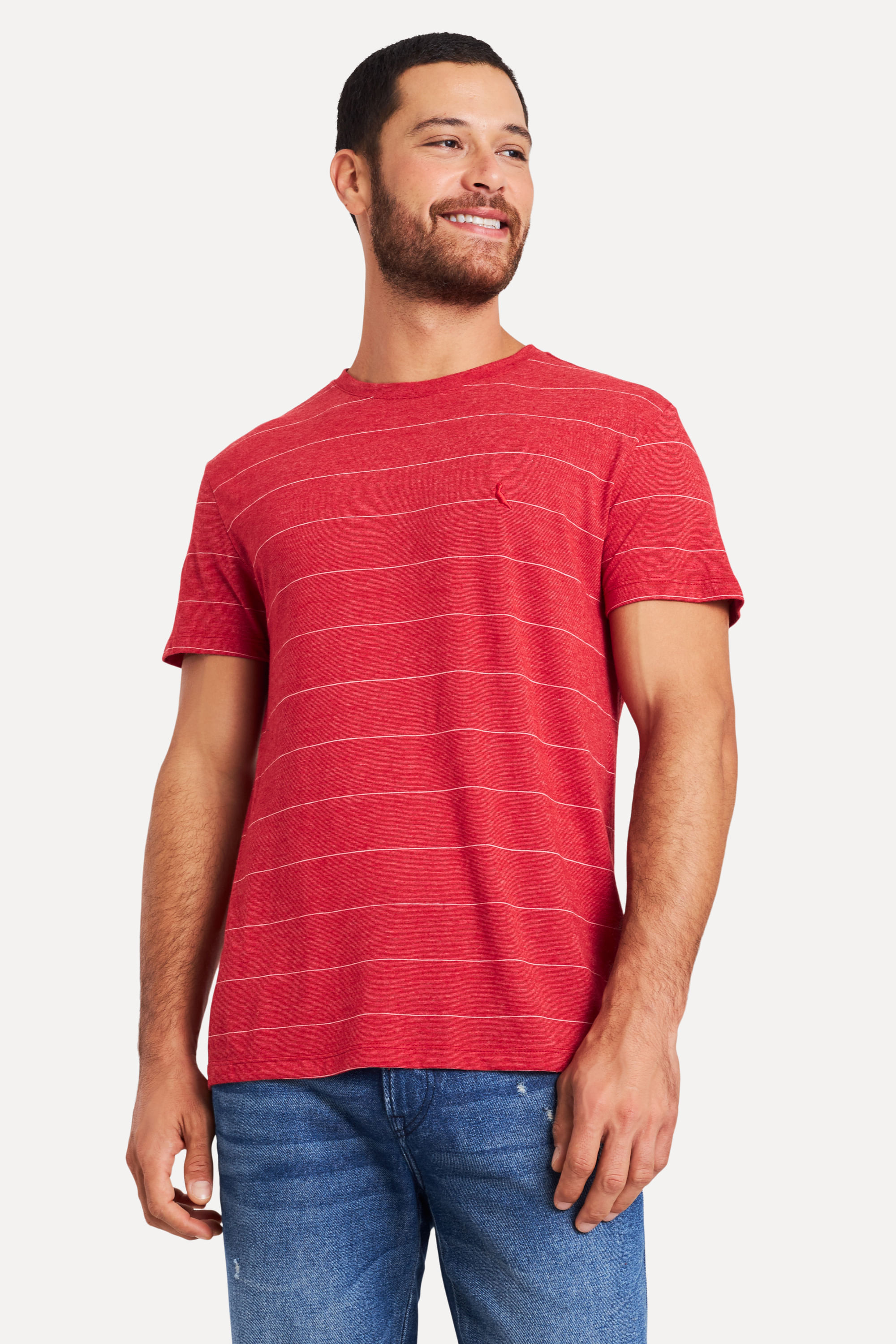 Com a Camiseta MC Listrada Lisa, você vai mandar bem em qualquer ocasião! Feita em malha listrada de viscose com linho, essa peça é perfeita para quem busca um estilo náutico. O Pica-Pau bordado e a etiqueta interna vermelha mostra que você tem bom gosto até nos mínimos detalhes. Se joga nessa tendência e garanta já a sua! Camiseta produzida eticamente no Brasil. Comprando esta peça, você viabiliza cinco pratos de comida através do nosso programa 1P5P. O modelo tem 1,90 m de altura, 95 cm de tórax e veste M.