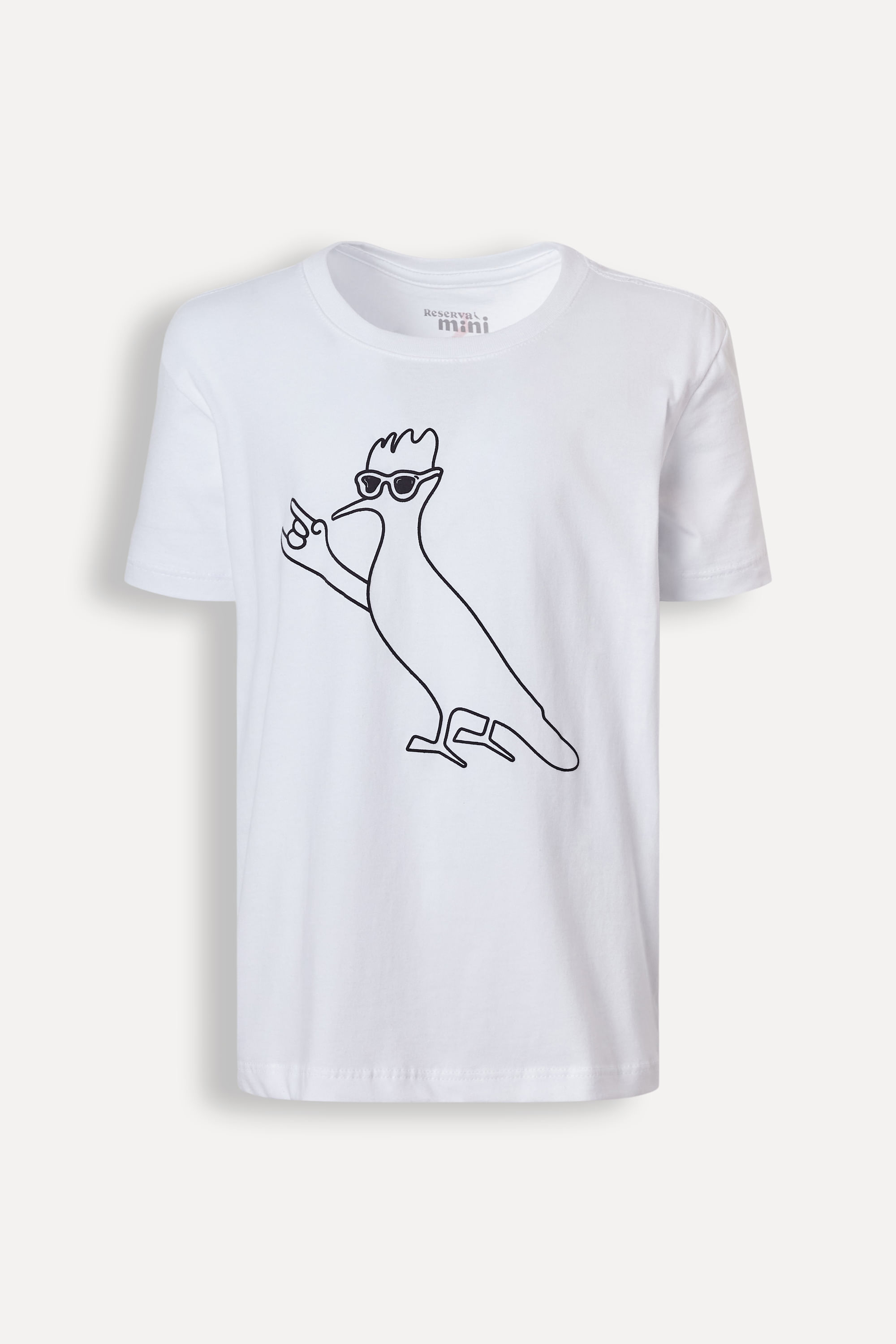 Camiseta da linha infantil Reserva Mini. A modelagem básica em malha 100% algodão de toque macio, com decote redondo e ribana. Tem nosso querido pica-pau estampado na frente com efeito de relevo no contorno, dando um toque interativo à peça, um lançamento exclusivo da coleção. Produzido eticamente no Brasil. Comprando esta peça, você complementa cinco pratos de comida através do nosso programa 1P=5P.