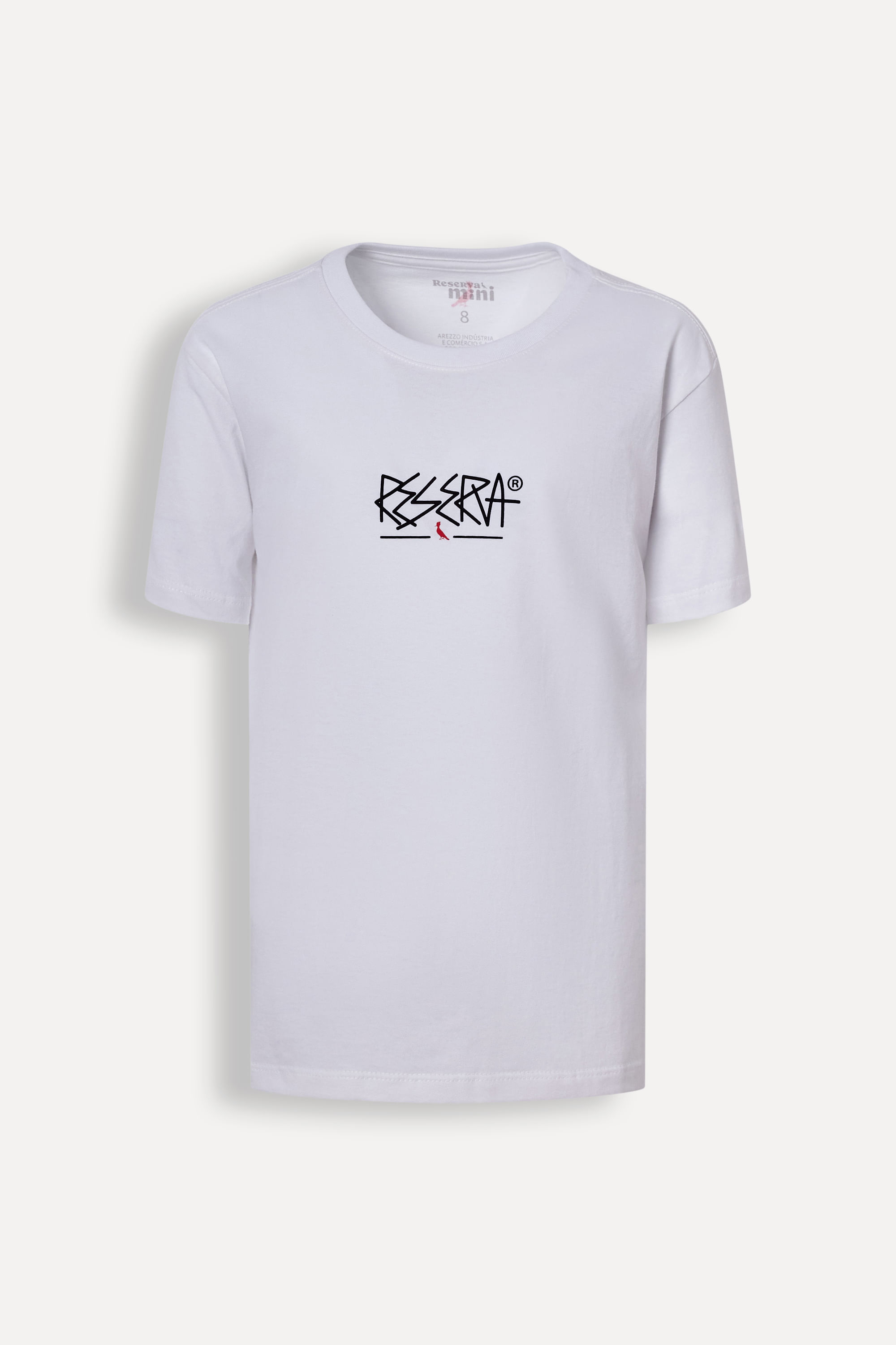 Camiseta da linha infantil Reserva Mini. A modelagem básica em malha 100% algodão de toque macio, com decote redondo e ribana. Tem assinatura exclusiva da coleção com temática street Produzido eticamente no Brasil. Comprando esta peça, você complementa cinco pratos de comida através do nosso programa 1P=5P.