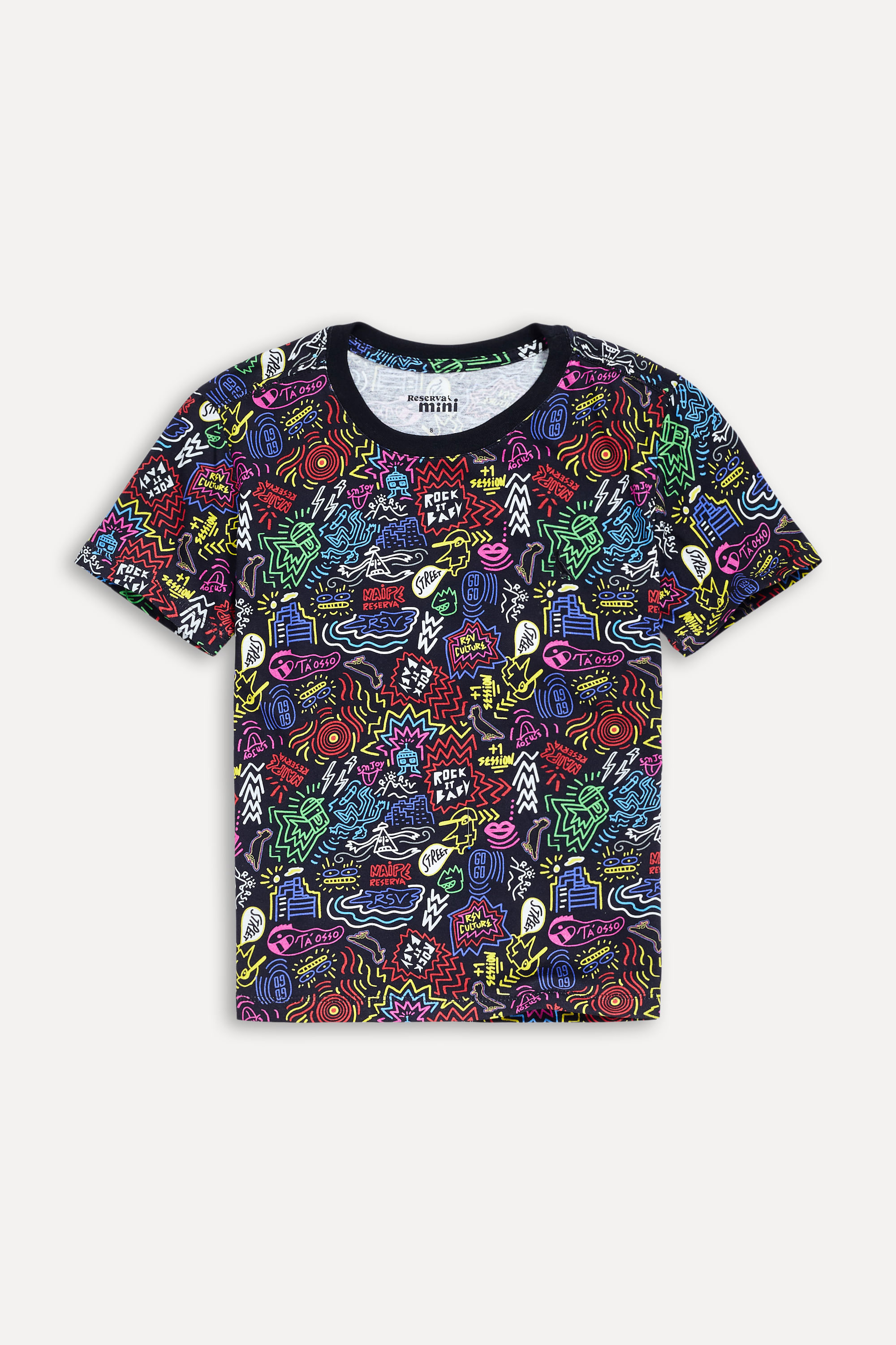 Camiseta da linha infantil Reserva Mini. A peça é feita em malha 100% algodão estampada, super confortável e tem modelagem básica, perfeita para o dia a dia. Gola de ribana preta. Estampa exclusiva da coleção e assinatura de pica-pau bordado no peito. Produzido eticamente no Brasil. Comprando esta peça, você complementa cinco pratos de comida através do nosso programa 1P=5P.