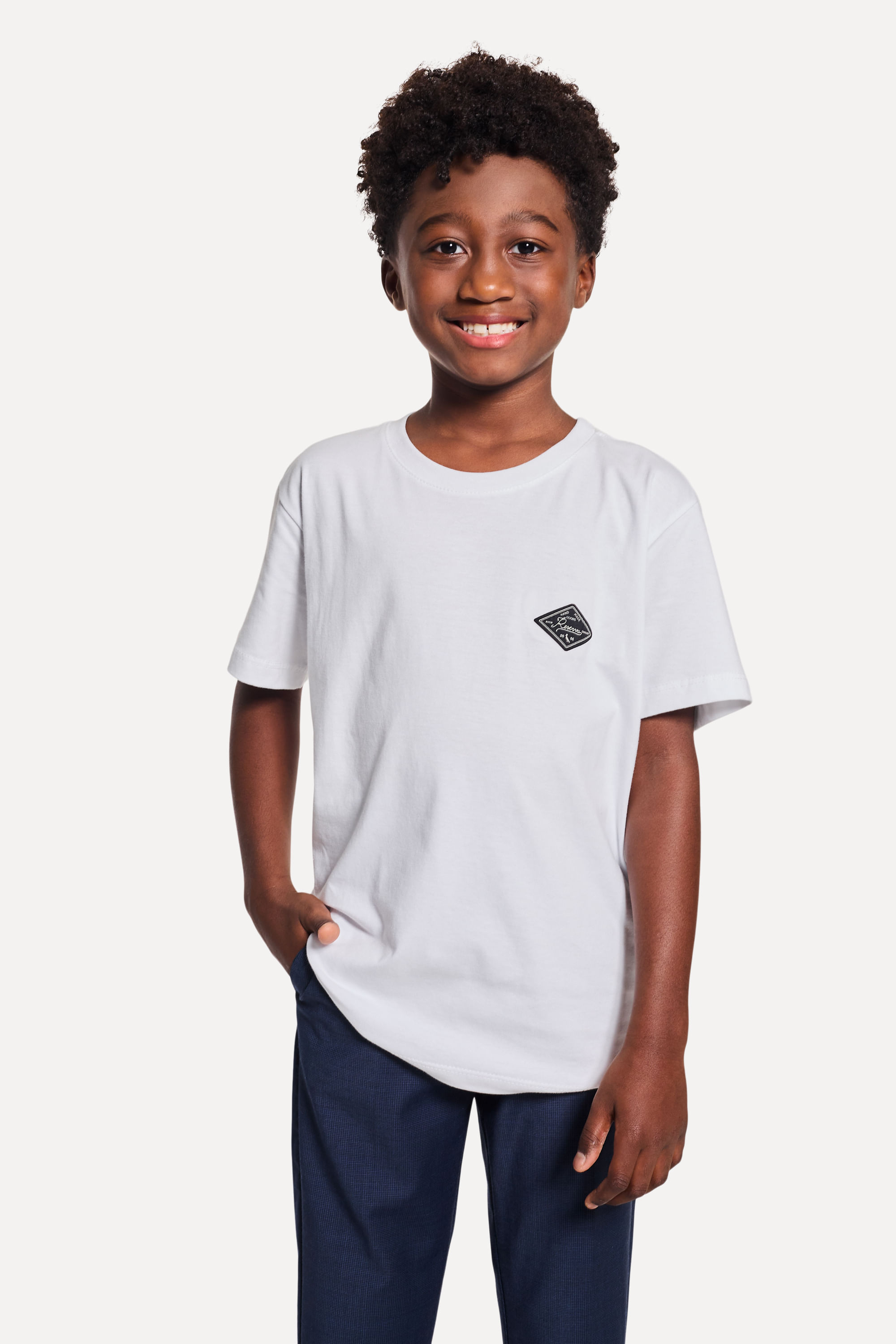 Camiseta da linha infantil Reserva Mini. O modelo básico em malha 100% algodão com gola careca. é uma peça super confortável. É assinado com um patch sofisticado, que dá um ar moderno à peça. Peça básica e coringa que combina com tudo, de bermudas estampadas a calças jeans. Produzido eticamente no Brasil. Comprando esta peça, você complementa cinco pratos de comida através do nosso programa 1P=5P.