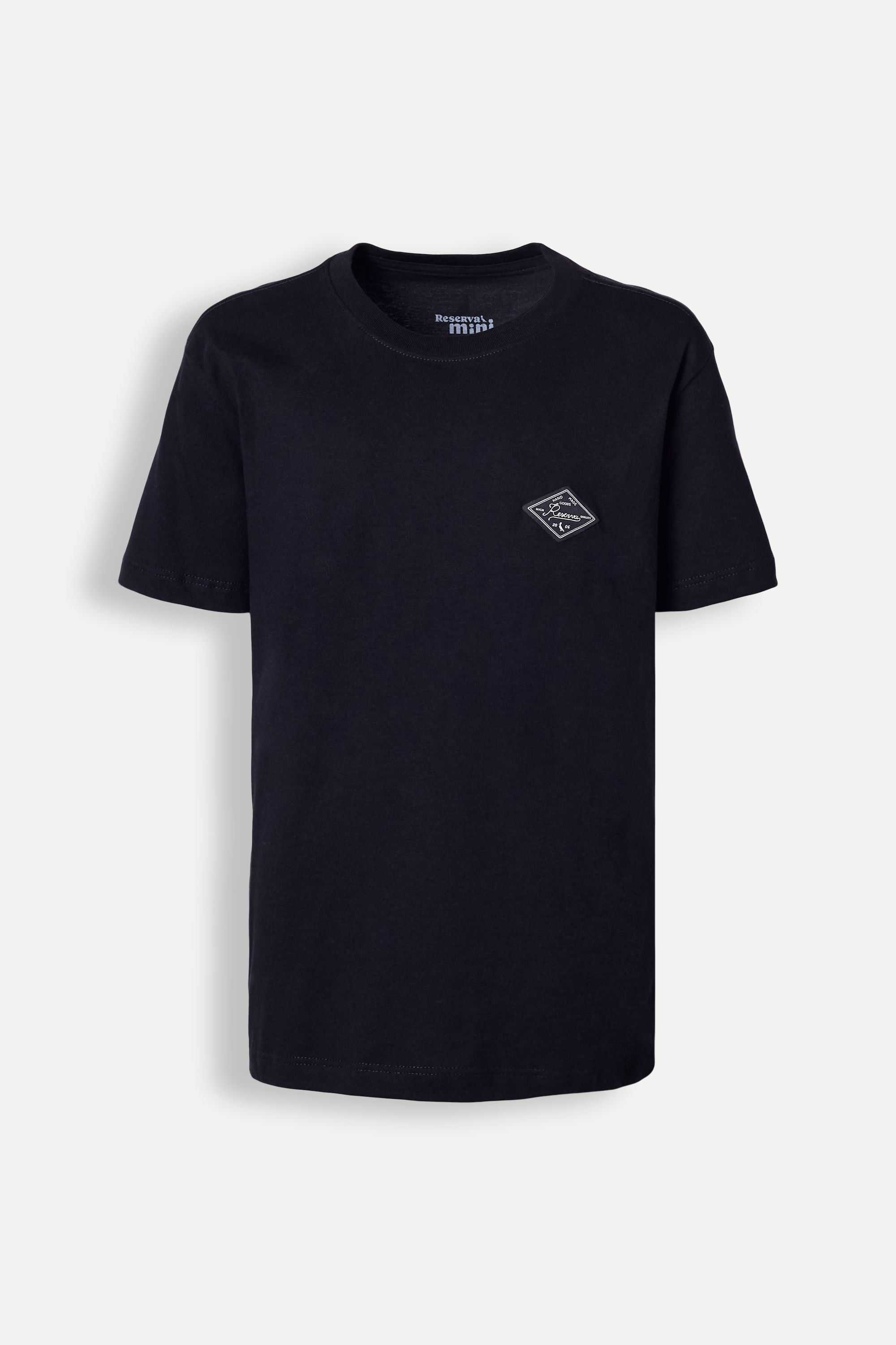 Camiseta da linha infantil Reserva Mini. O modelo básico em malha 100% algodão com gola careca. é uma peça super confortável. É assinado com um patch sofisticado, que dá um ar moderno à peça. Peça básica e coringa que combina com tudo, de bermudas estampadas a calças jeans. Produzido eticamente no Brasil. Comprando esta peça, você complementa cinco pratos de comida através do nosso programa 1P=5P.