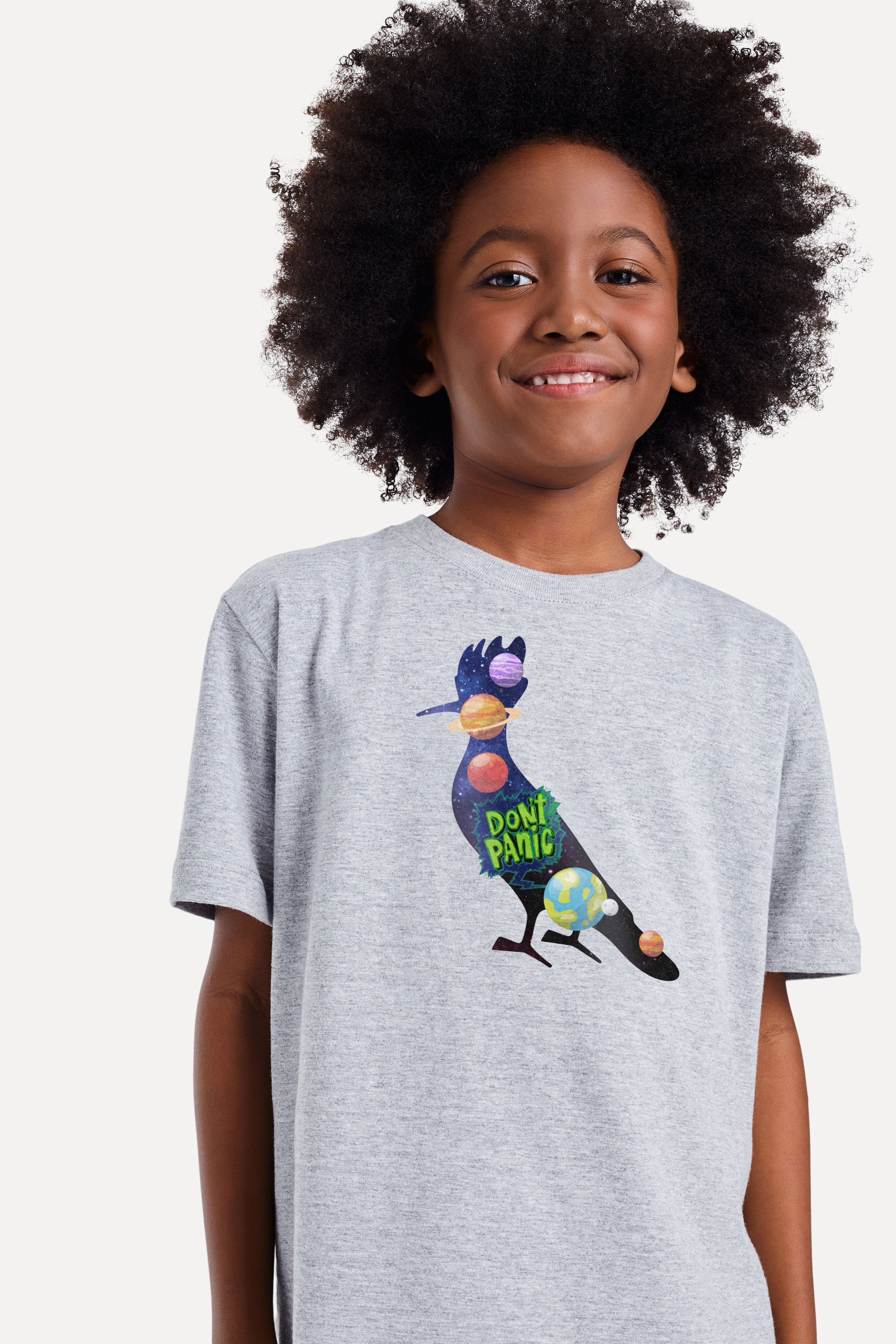 A camiseta estampada Don’t Panic tem como destaque o sistema solar. Deixe a criatividade correr solta com nossas camisetas infantis de estampas vibrantes! Cada peça é uma obra de arte que inspira brincadeiras e encanta os olhos curiosos. Produzido eticamente no Brasil. Comprando esta peça, você complementa cinco pratos de comida através do nosso programa 1P=5P.