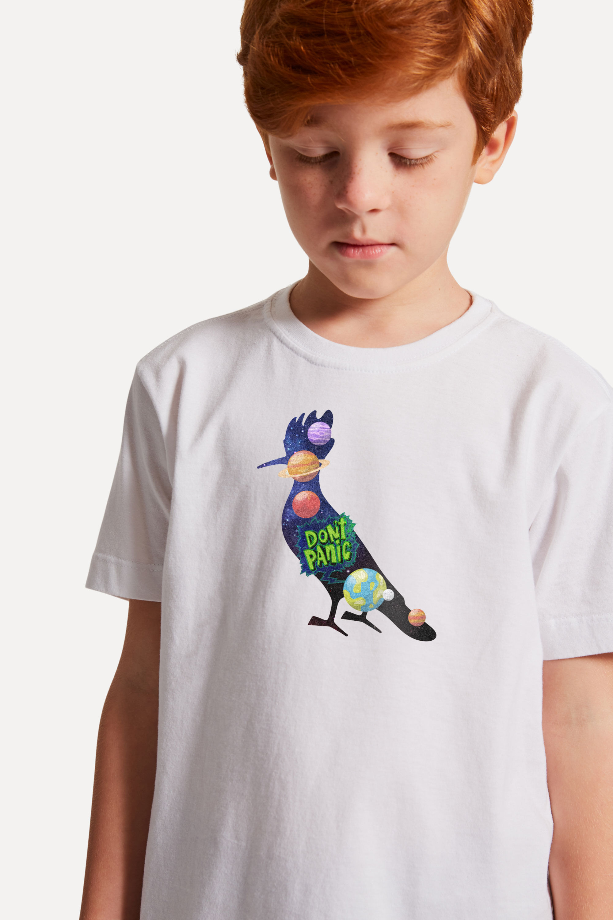 A camiseta estampada Don’t Panic tem como destaque o sistema solar. Deixe a criatividade correr solta com nossas camisetas infantis de estampas vibrantes! Cada peça é uma obra de arte que inspira brincadeiras e encanta os olhos curiosos. Produzido eticamente no Brasil. Comprando esta peça, você complementa cinco pratos de comida através do nosso programa 1P=5P.
