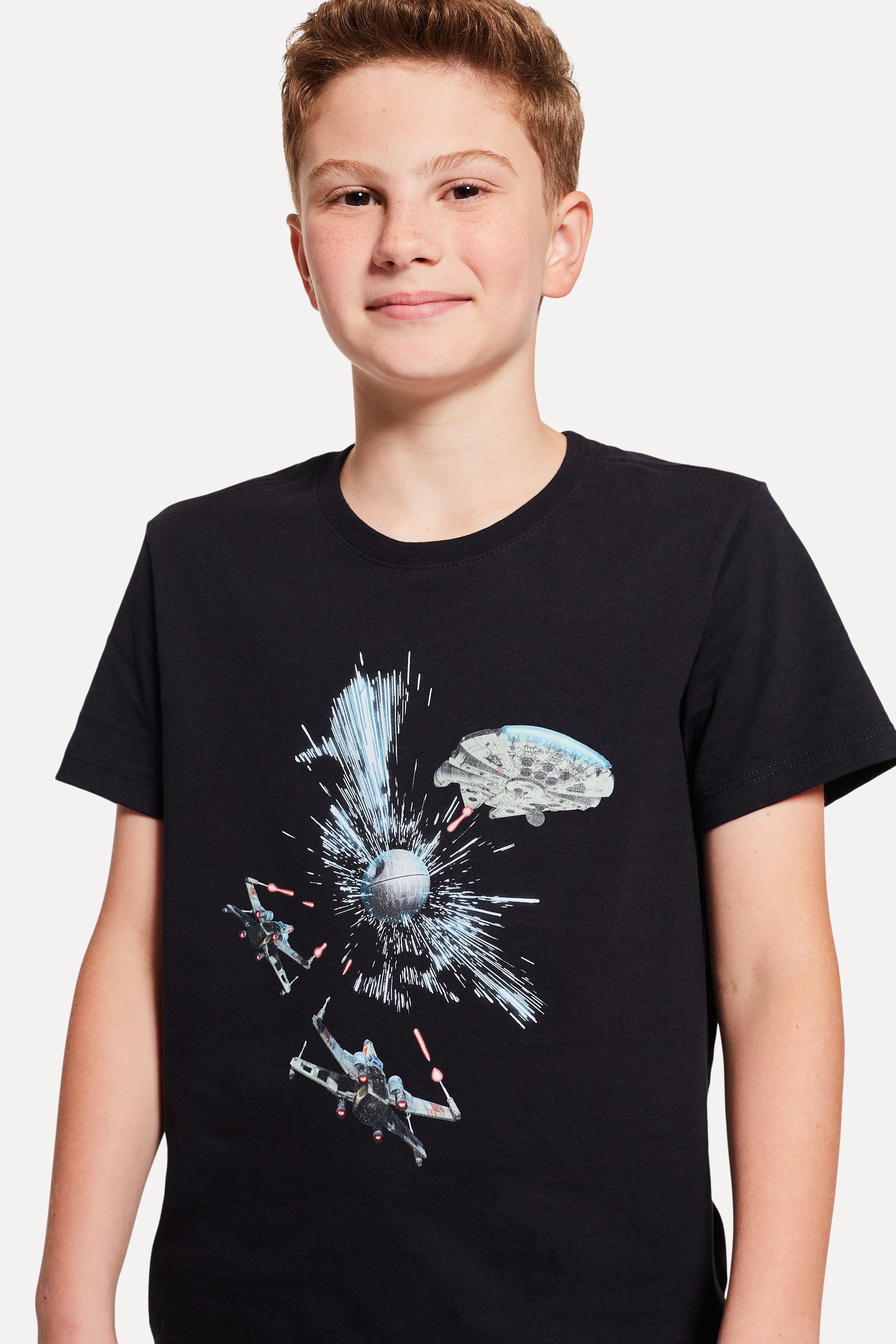 Que a força esteja com você! Conheça a Camiseta Estampada Aliança Rebelde, perfeita para ser usada em uma galáxia distante! Feita 100% em algodão, garante que o Mini se divirta sem sentir calor. Possui manga curta, modelagem regula e gola redonda de ribana de algodão. Sua estampa em silkscreen traz as naves da Aliança Rebelde, com nosso pica-pau estampado da velocidade da luz no fundo. Pra diversão ficar completa, combine com calças ou bermudas, tênis ou chinelos. Comprando esta peça, você viabiliza cinco pratos de comida através do nosso Programa 1P5P. Camiseta produzida eticamente no Brasil.