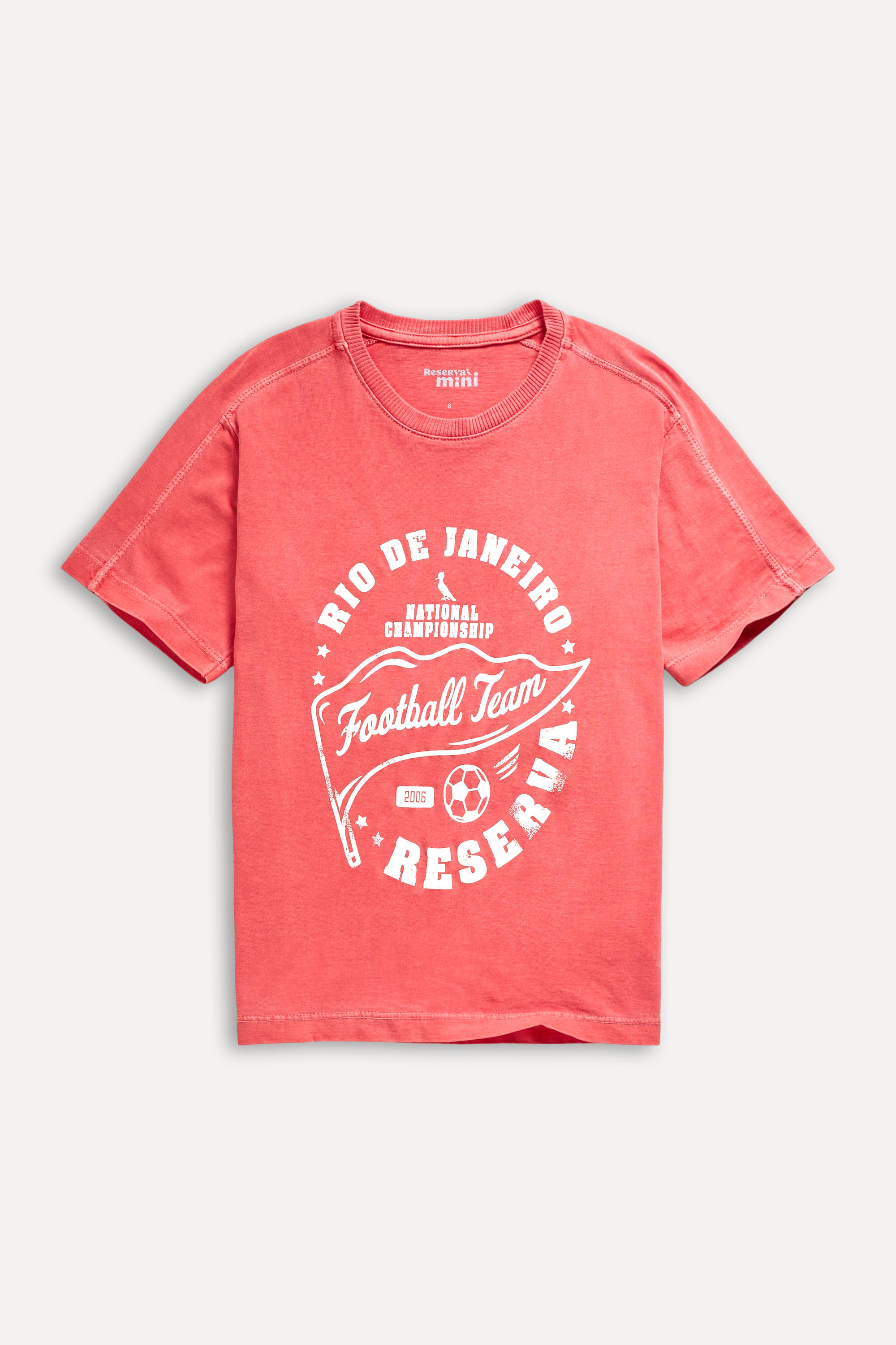 Camiseta da linha infantil Reserva Mini. O modelo em malha 100% algodão, decote careca, de ribana canelado, recorte nos ombros e estampa exclusiva da Reserva. Tingimento estonado, dando uma característica de desgaste irregular, como se fosse naturalmente desgastada pelo tempo, dando um ar vintage e marcando as costuras. Tem estampa divertida exclusiva da coleção inverno 24 por cima do tingimento Produzido eticamente no Brasil. Comprando esta peça, você complementa cinco pratos de comida através do nosso programa 1P=5P.