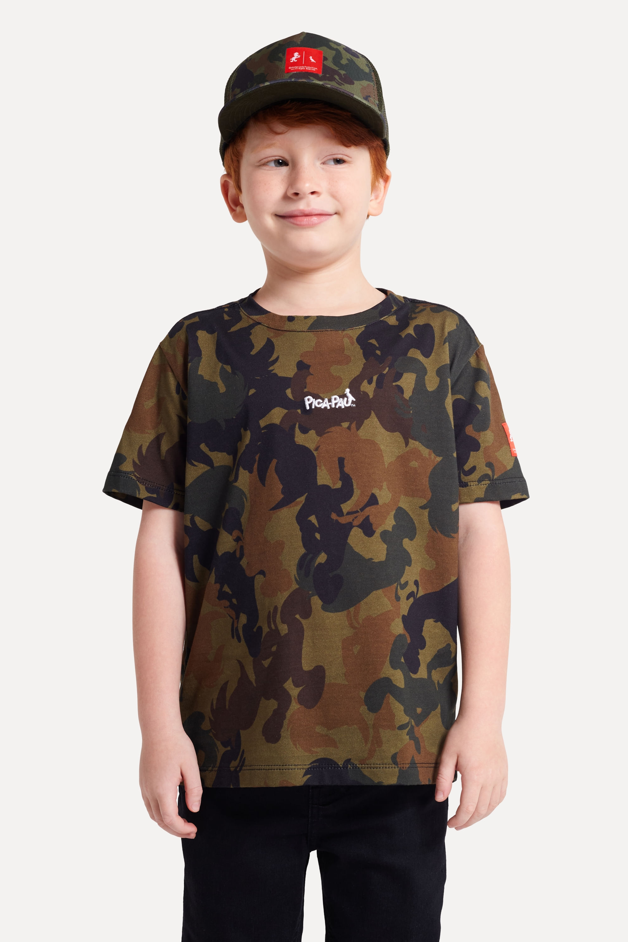 Essa gente inventa cada coisa... A Camiseta Infantil Pica Pau Camuflado é super básica e coringa para usar no dia-a-dia de muitas brincadeiras. Combine com bermuda e tênis para compor um look despojado e moderno. Produzido eticamente no Brasil. Comprando esta peça, você viabiliza cinco pratos de comida através do nosso programa 1P5P