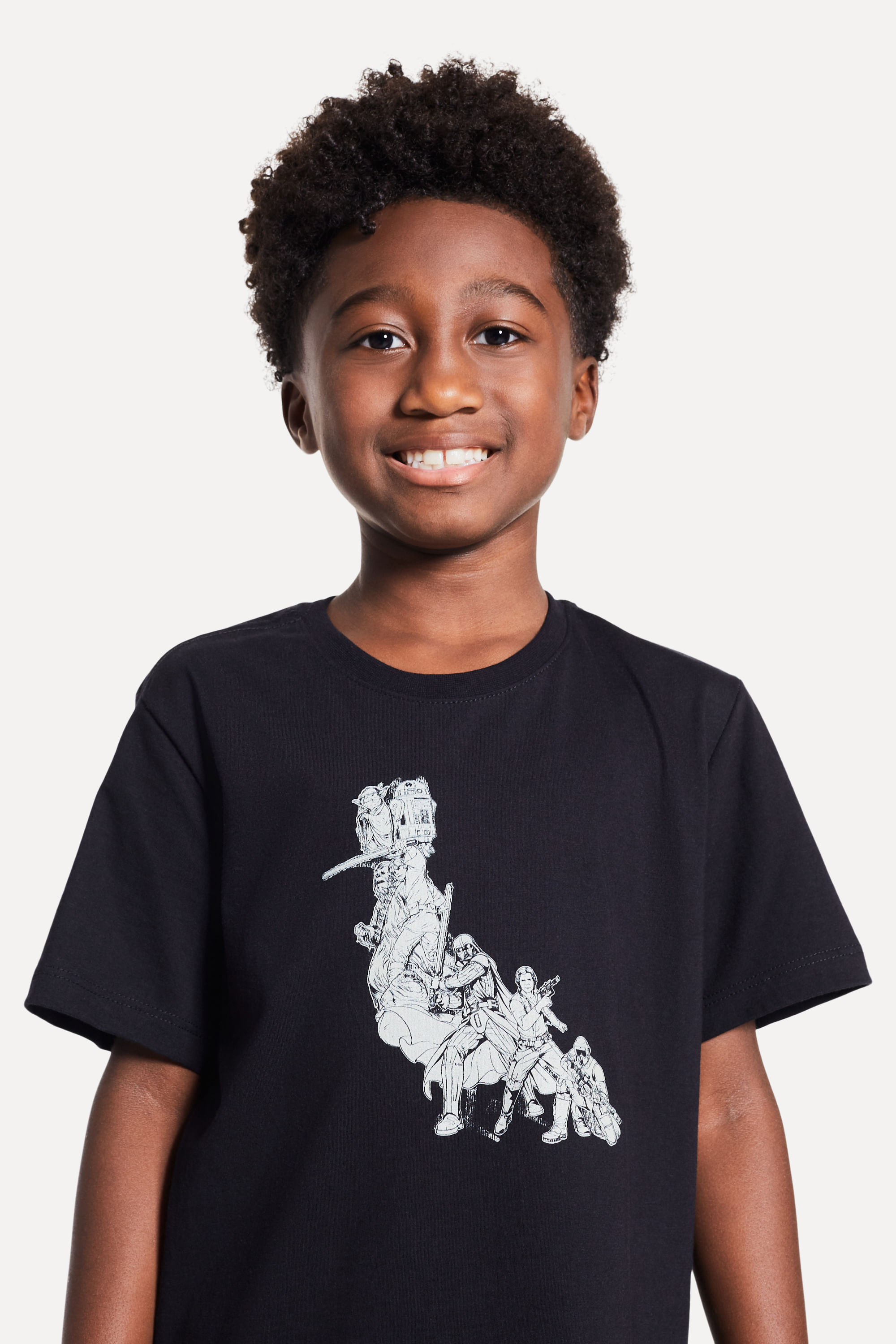 Que a força esteja com você! Conheça a Camiseta Estampada Pica Pau Star Wars, perfeita para ser usada em uma galáxia distante! Feita 100% em algodão, garante que o Mini se divirta sem sentir calor. Possui manga curta, modelagem regula e gola redonda de ribana de algodão. Sua estampa em silkscreen traz nosso pica-pau feito em montagem de icônicos personagens da saga, além de seu inconfundível logo. Pra diversão ficar completa, combine com calças ou bermudas, tênis ou chinelos. Comprando esta peça, você viabiliza cinco pratos de comida através do nosso Programa 1P5P. Camiseta produzida eticamente no Brasil.