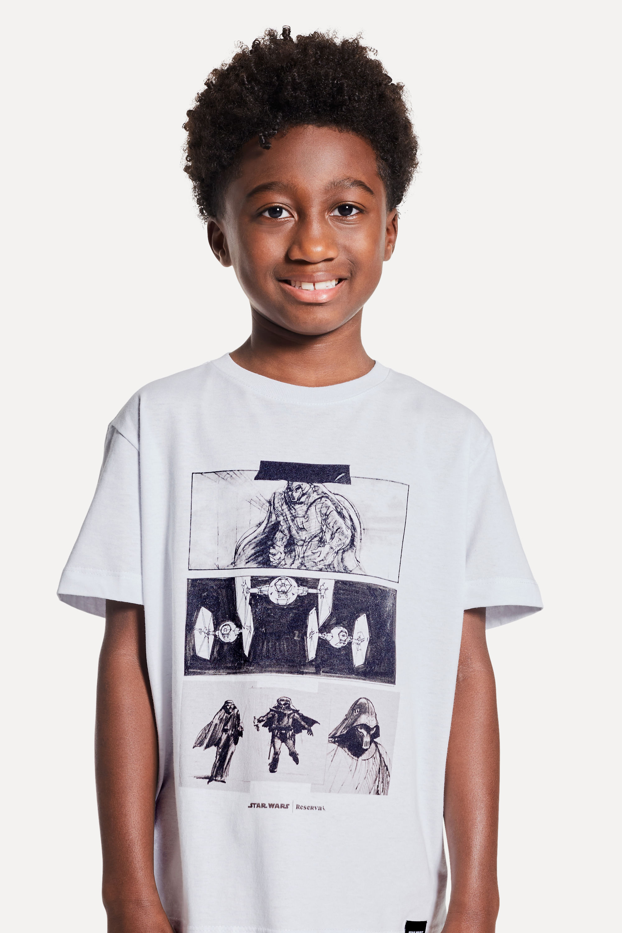 Que a força esteja com você! Conheça a Camiseta Estampada Quadrinhos Star Wars, perfeita para ser usada em uma galáxia distante! Feita 100% em algodão, garante que o Mini se divirta sem sentir calor. Possui manga curta, modelagem regula e gola redonda de ribana de algodão. Sua estampa em silkscreen traz algumas cenas da saga, em formato de história em quadrinhos. Pra diversão ficar completa, combine com calças ou bermudas, tênis ou chinelos. Comprando esta peça, você viabiliza cinco pratos de comida através do nosso Programa 1P5P. Camiseta produzida eticamente no Brasil.