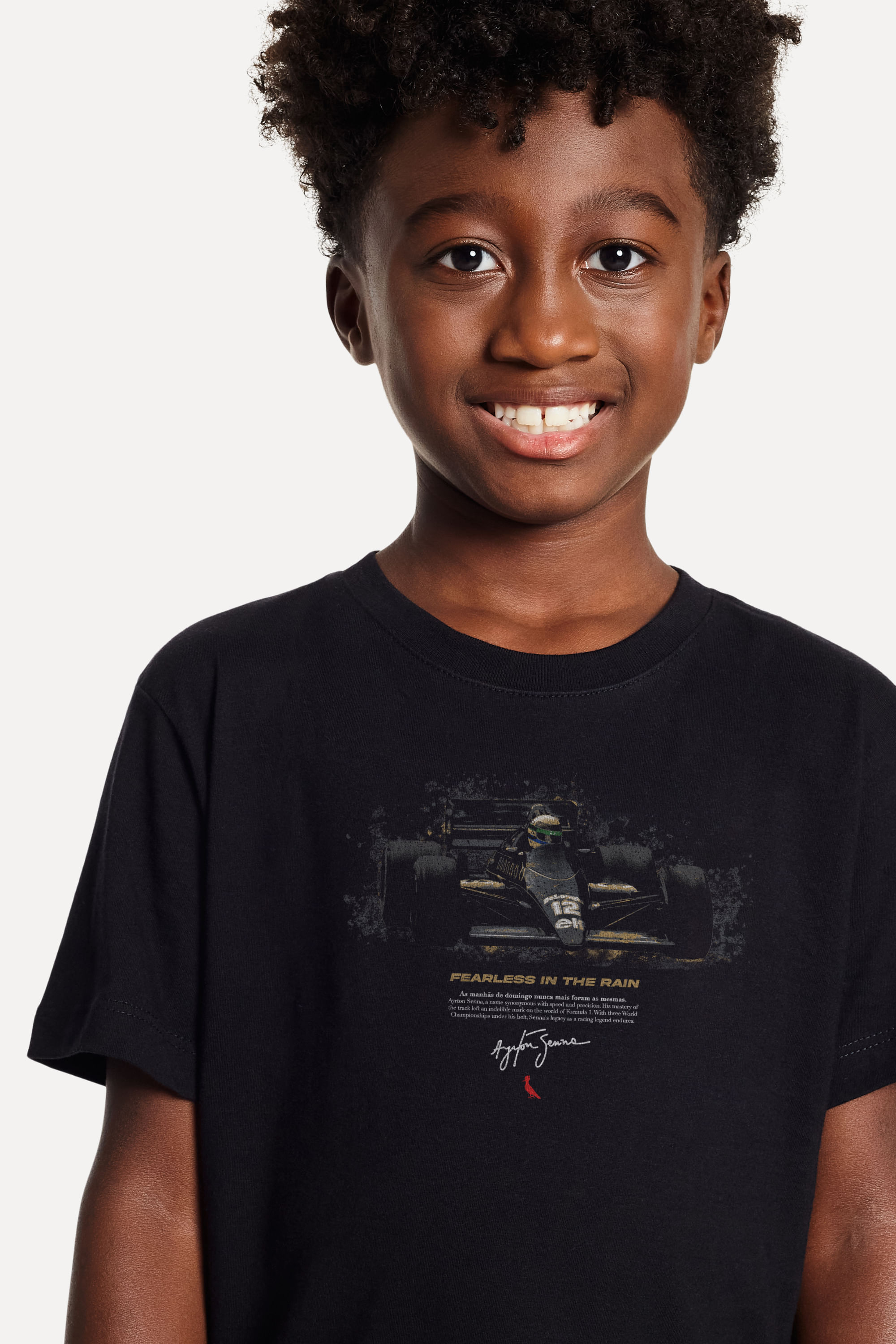 Das manhãs de domingo para a eternidade! Conheça a Camiseta Fearless in The Rain Senna, feita para os novos fãs de um dos maiores pilotos de Fórmula 1 da história. Feita em malha 100% algodão, manga curta, gola redonda de ribana de algodão e modelagem regular, que oferece caimento reto no corpo. Sua estampa traz Ayrton em sua Lotus com a frase “Fearless in The Rain” (Destemido na chuva, em tradução), homenageando sua habilidade única em corridas na chuva. Disponível em 2 cores, escolha qual combina mais o estilo do Mini. Combine com calças ou bermudas, tênis ou chinelos e acelere! Comprando esta peça, você viabiliza cinco pratos de comida através do nosso Programa 1P5P. Camiseta produzida eticamente no Brasil.