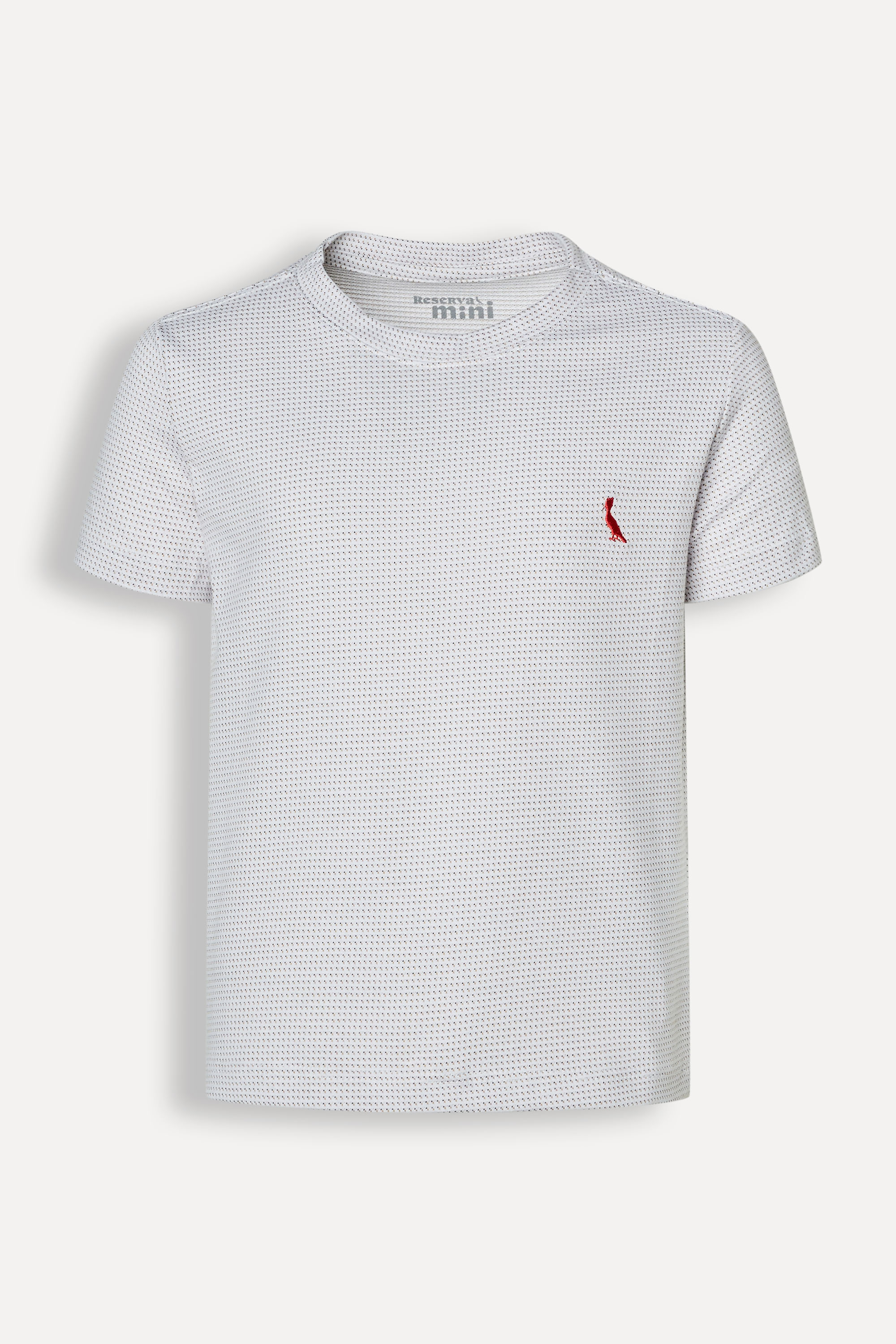 Procurando camiseta pro dia a dia do Mini? Então conheça a Camiseta Mini Jacquard Dom! Feita em algodão de alta qualidade, proporciona muito conforto. Possui manga curta e gola redonda em ribana. Combine com calças ou bermudas, tênis ou chinelos e agasalhos. Comprando esta peça, você viabiliza cinco pratos de comida através do nosso Programa 1P5P. Camiseta produzida eticamente no Brasil.