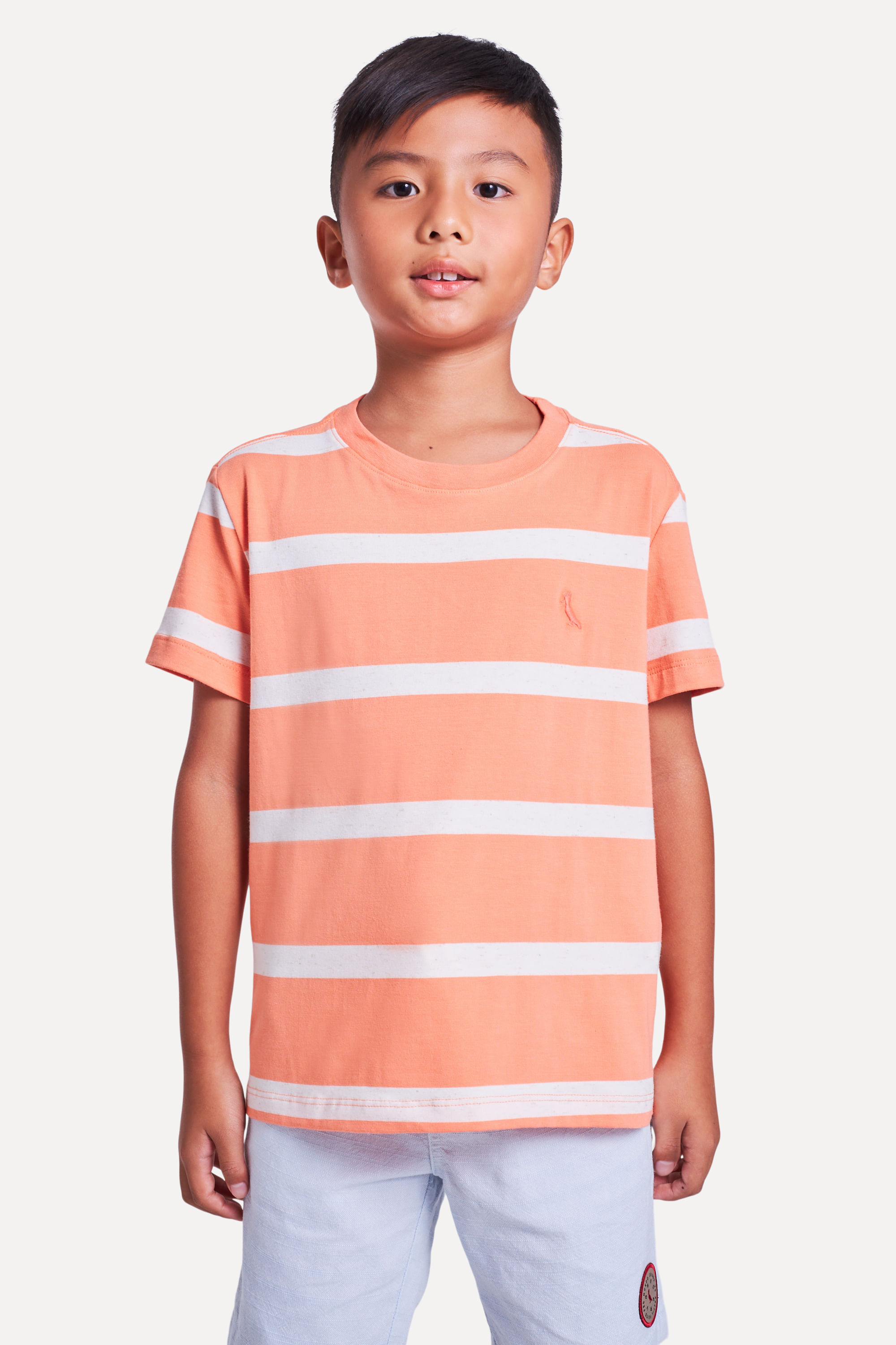 Camiseta da linha infantil Reserva Mini. A peça em malha fio tinto tem listras largas e coloridas com as cores do verão. Possui bordado do pica-pau em tom contrastante. Perfeita para incrementar partes de baixo básicas! Produzido eticamente no Brasil. Comprando esta peça, você viabiliza cinco pratos de comida através do nosso programa 1P5P.
