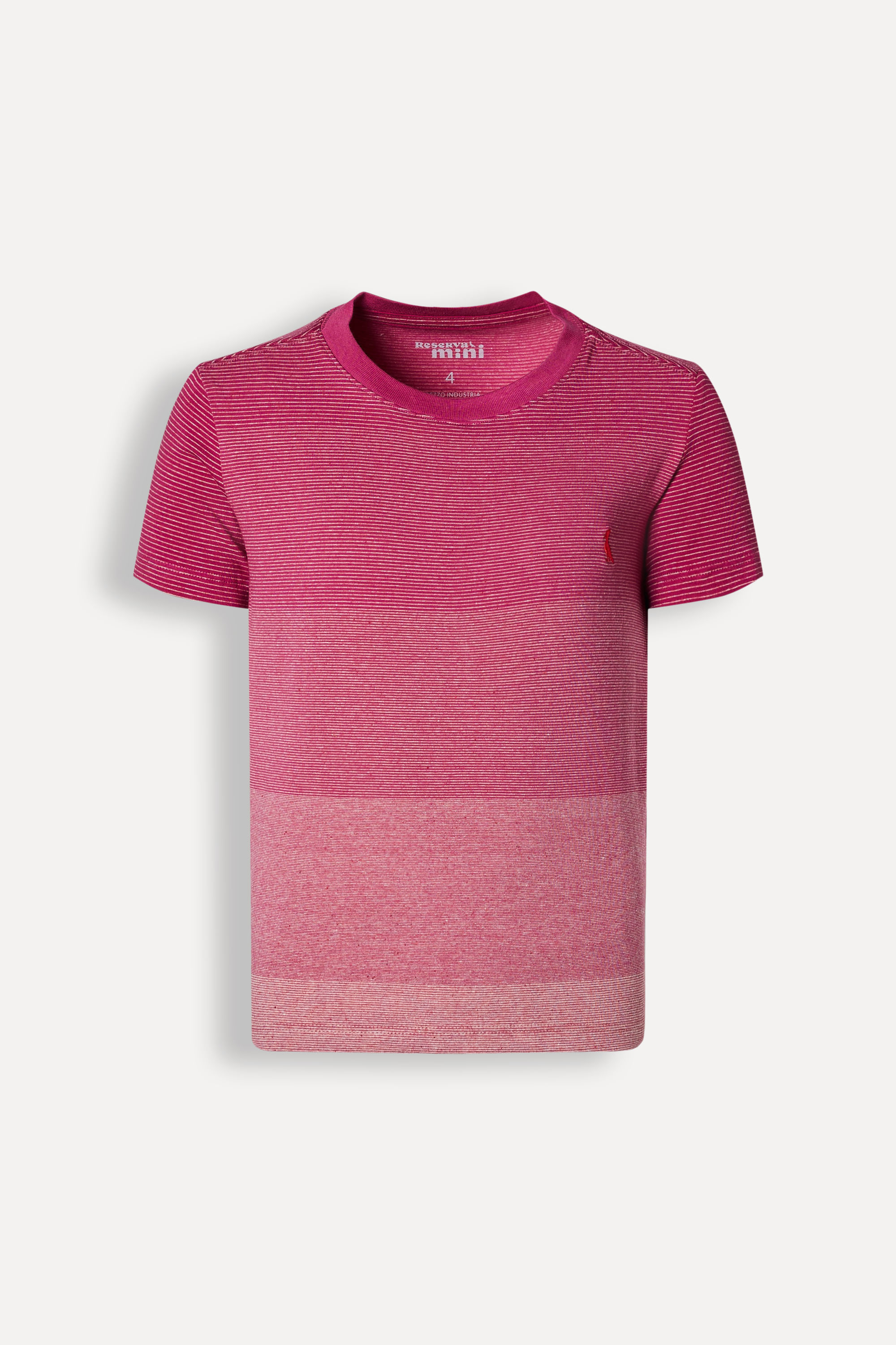 Procurando camiseta pro dia a dia do Mini? Então conheça a Camiseta Mini Listra Degradê! Feita em algodão de alta qualidade, proporciona muito conforto. Possui manga curta e gola redonda em ribana. Combine com calças ou bermudas, tênis ou chinelos e agasalhos. Comprando esta peça, você viabiliza cinco pratos de comida através do nosso Programa 1P5P. Camiseta produzida eticamente no Brasil.