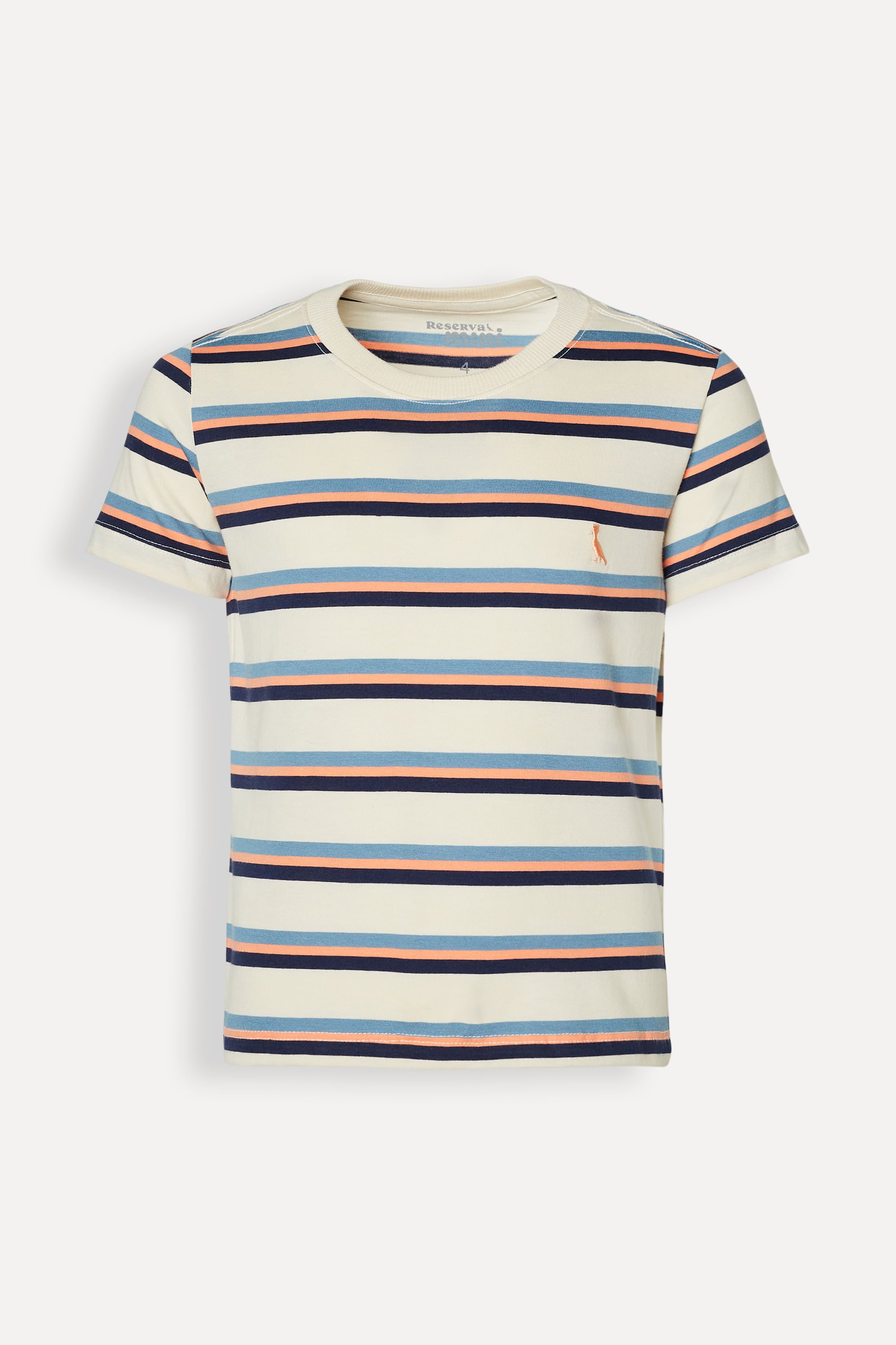 Procurando camiseta pro dia a dia do Mini? Então conheça a Camiseta Mini Listra Tripla! Feita em algodão de alta qualidade, proporciona muito conforto. Possui manga curta e gola redonda em ribana. Combine com calças ou bermudas, tênis ou chinelos e agasalhos. Comprando esta peça, você viabiliza cinco pratos de comida através do nosso Programa 1P5P. Camiseta produzida eticamente no Brasil.