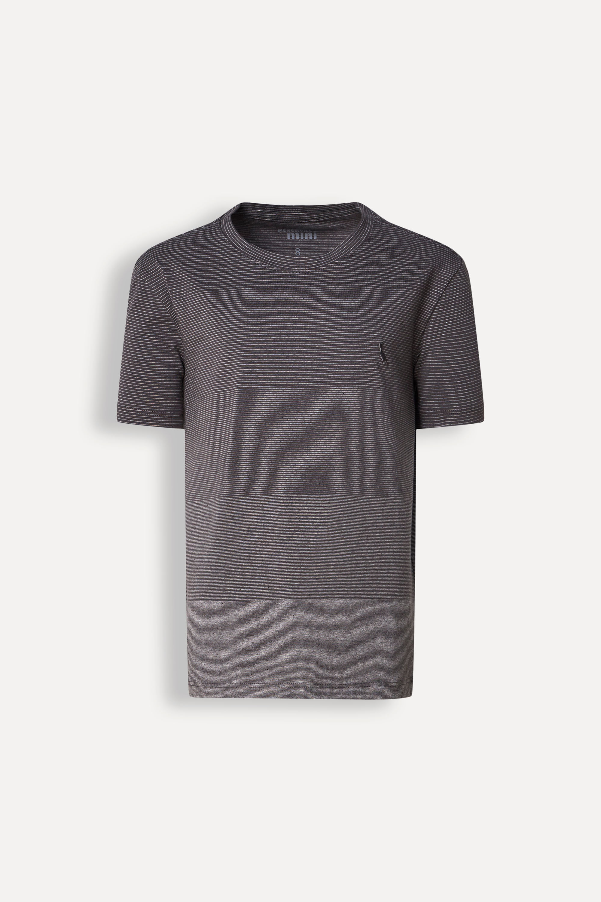 Procurando camiseta pro dia a dia do Mini? Então conheça a Camiseta Mini Listrado Caua II! Feita em algodão de alta qualidade, proporciona muito conforto. Possui manga curta e gola redonda em ribana. Combine com calças ou bermudas, tênis ou chinelos e agasalhos. Comprando esta peça, você viabiliza cinco pratos de comida através do nosso Programa 1P5P. Camiseta produzida eticamente no Brasil.