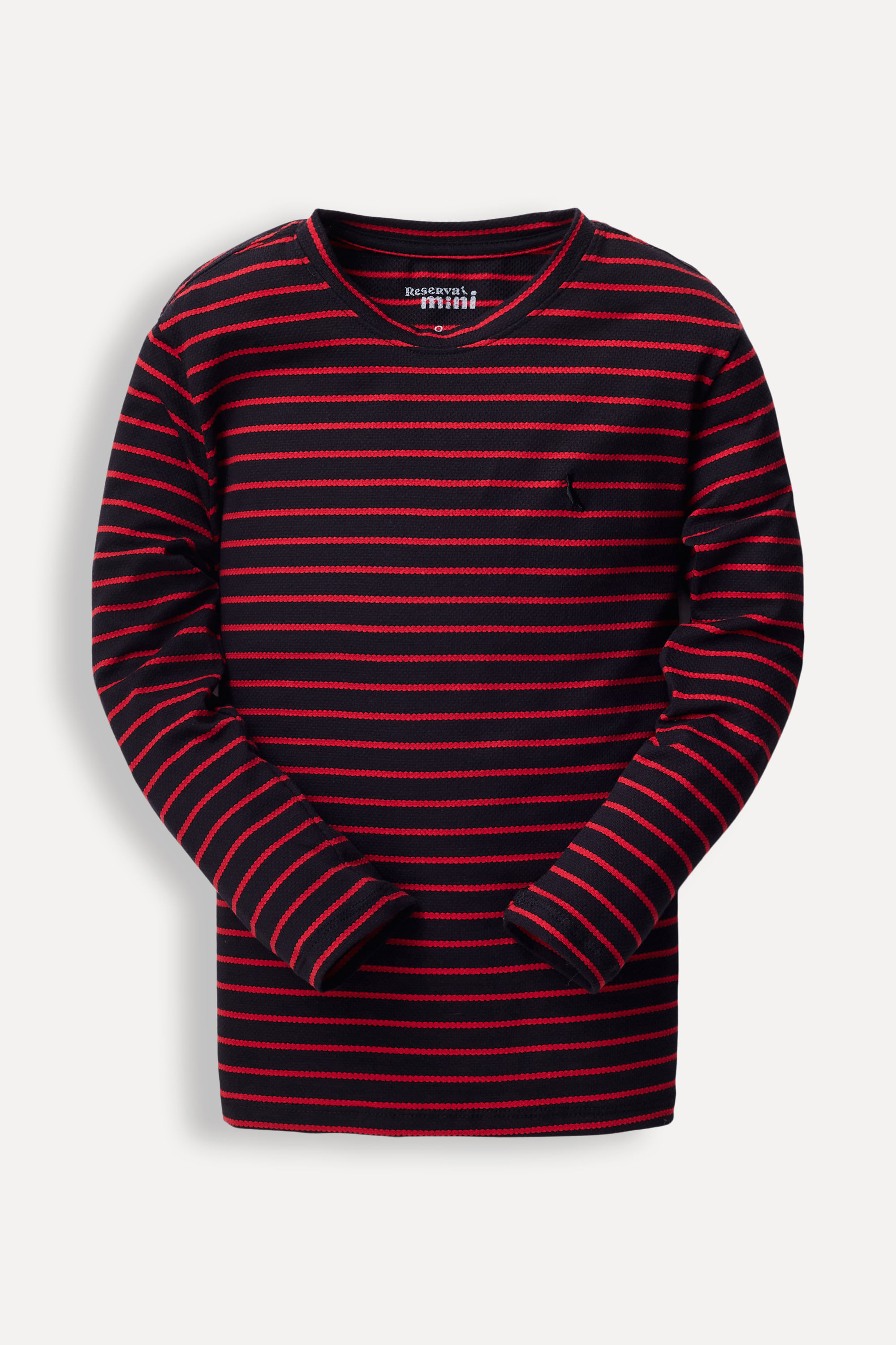 Procurando camiseta pro dia a dia do Mini? Então conheça a Camiseta Mini ML Listra Trabalhada! Feita em algodão de alta qualidade, proporciona muito conforto. Possui manga longa e gola redonda em ribana. Combine com calças e tênis. Comprando esta peça, você viabiliza cinco pratos de comida através do nosso Programa 1P5P. Camiseta produzida eticamente no Brasil.