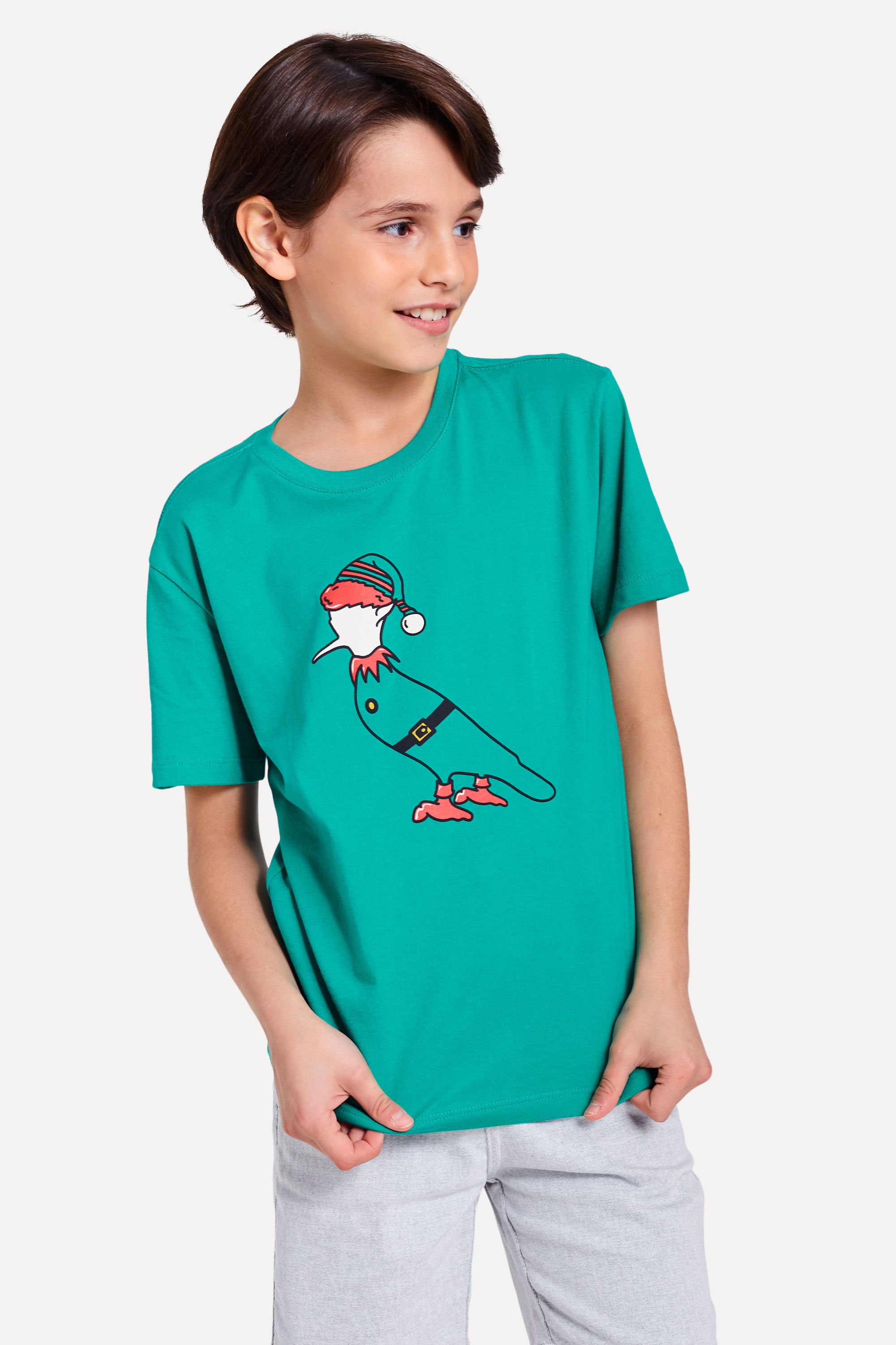 Camiseta infantil estampada confeccionada em malha 100% algodão que garante mais frescor. Essa camiseta possui manga curta, gola redonda de ribana de algodão e modelagem regular, que oferece caimento reto no corpo. A estampa é exclusiva da Reserva Mini, tema especial natalino, que possui o nosso famoso pica pau vestido de duende.
