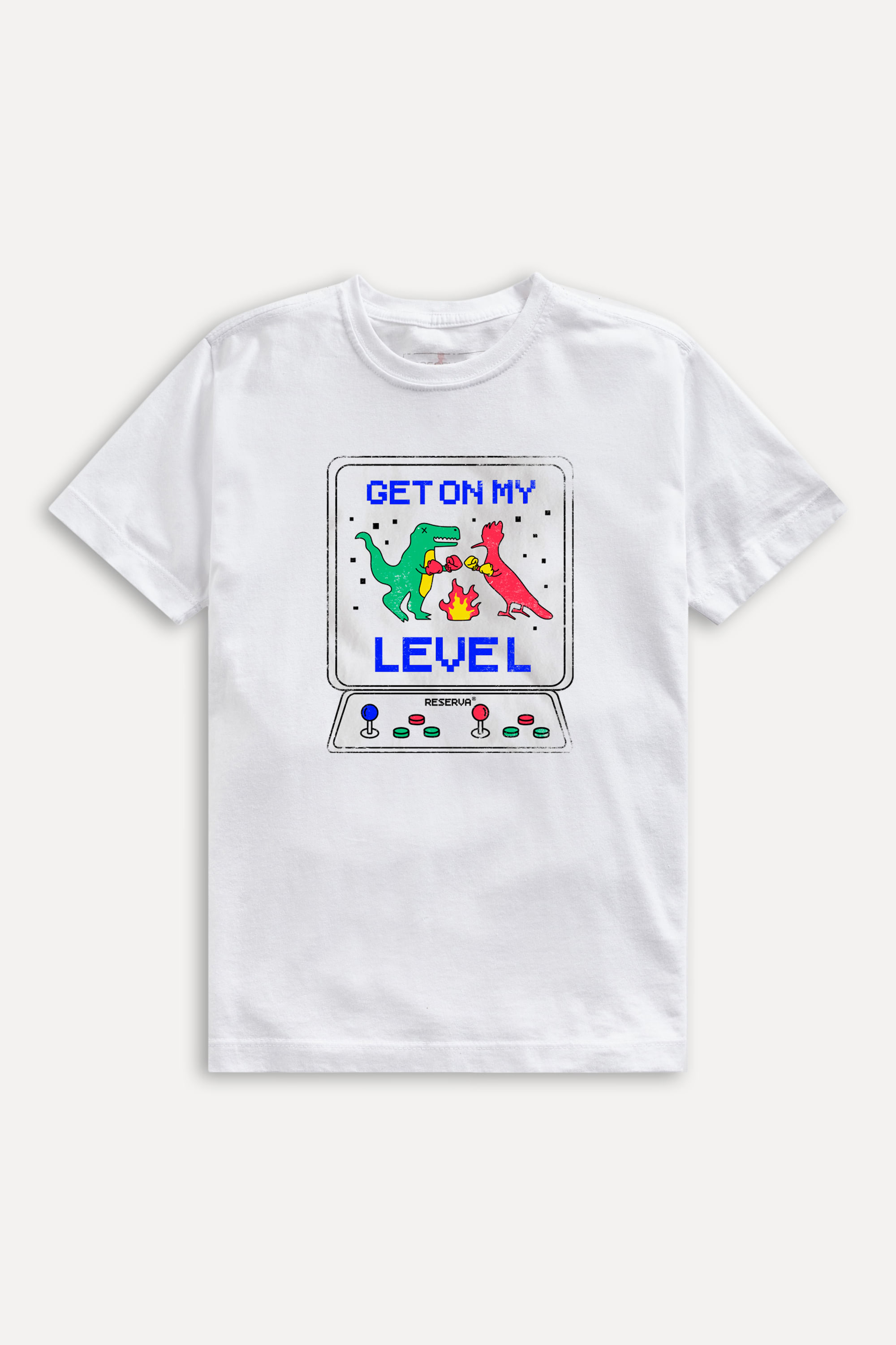 Camiseta da linha infantil Reserva Mini. O modelo básico em malha ganhou uma estampa super divertida. Macia, confortável e perfeita para o dia a dia cheio de brincadeira e aventura! Produzido eticamente no Brasil. Comprando esta peça, você complementa cinco pratos de comida através do nosso programa 1P=5P.