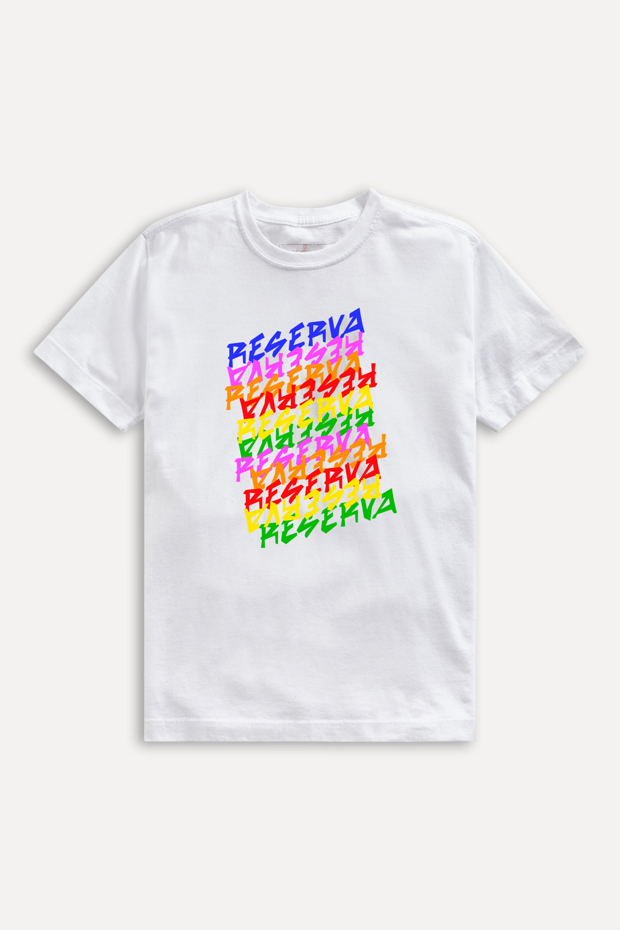 Camiseta da linha infantil Reserva Mini. O modelo básico em malha ganhou uma estampa super divertida. Macia, confortável e perfeita para o dia a dia cheio de brincadeira e aventura! Produzido eticamente no Brasil. Comprando esta peça, você complementa cinco pratos de comida através do nosso programa 1P=5P.