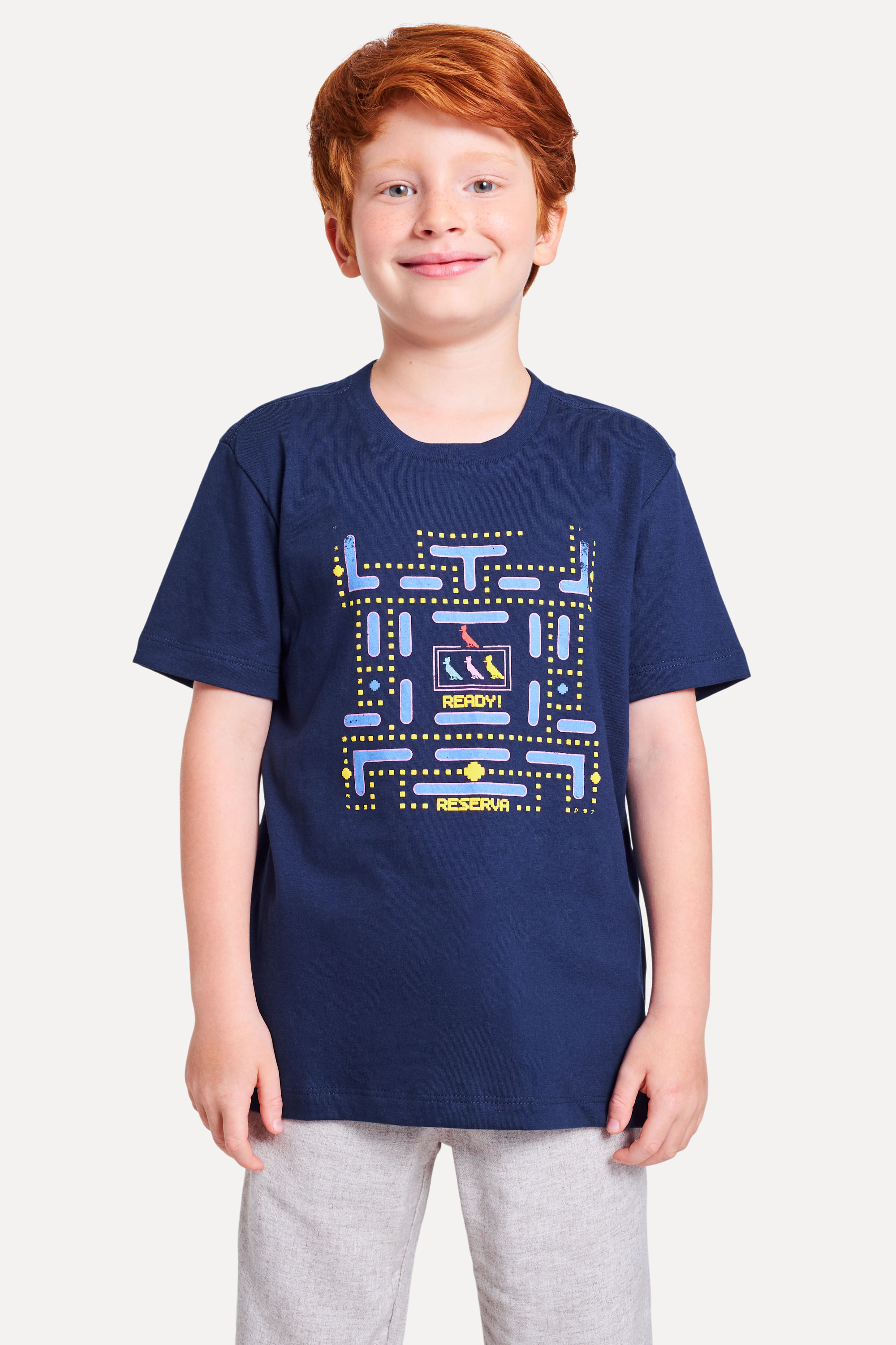 Camiseta da linha infantil Reserva Mini. O modelo em malha listradinha tem decote careca com gola de ribana e estampa exclusiva com silk 3D. Aposta certa que a criançada ama! Produzido eticamente no Brasil. Comprando esta peça, você complementa cinco pratos de comida através do nosso programa 1P=5P.