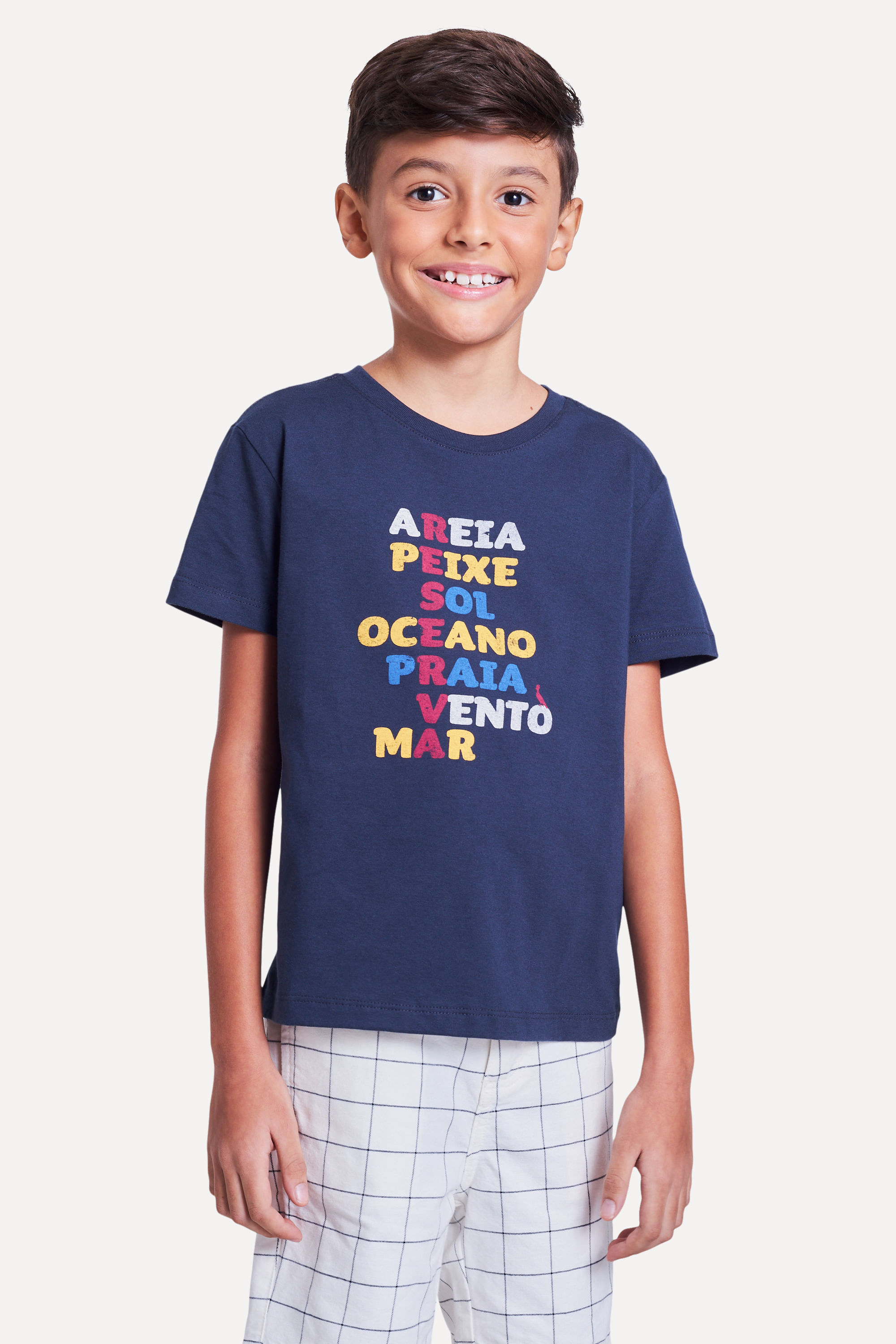 Camiseta da linha infantil Reserva Mini. O modelo em malha 100% algodão tem decote careca com gola de ribana e estampa exclusiva com palavras que é sucesso na Reserva. Aquele modelinho básico indispensável! Produzido eticamente no Brasil. Comprando esta peça, você complementa cinco pratos de comida através do nosso programa 1P=5P.