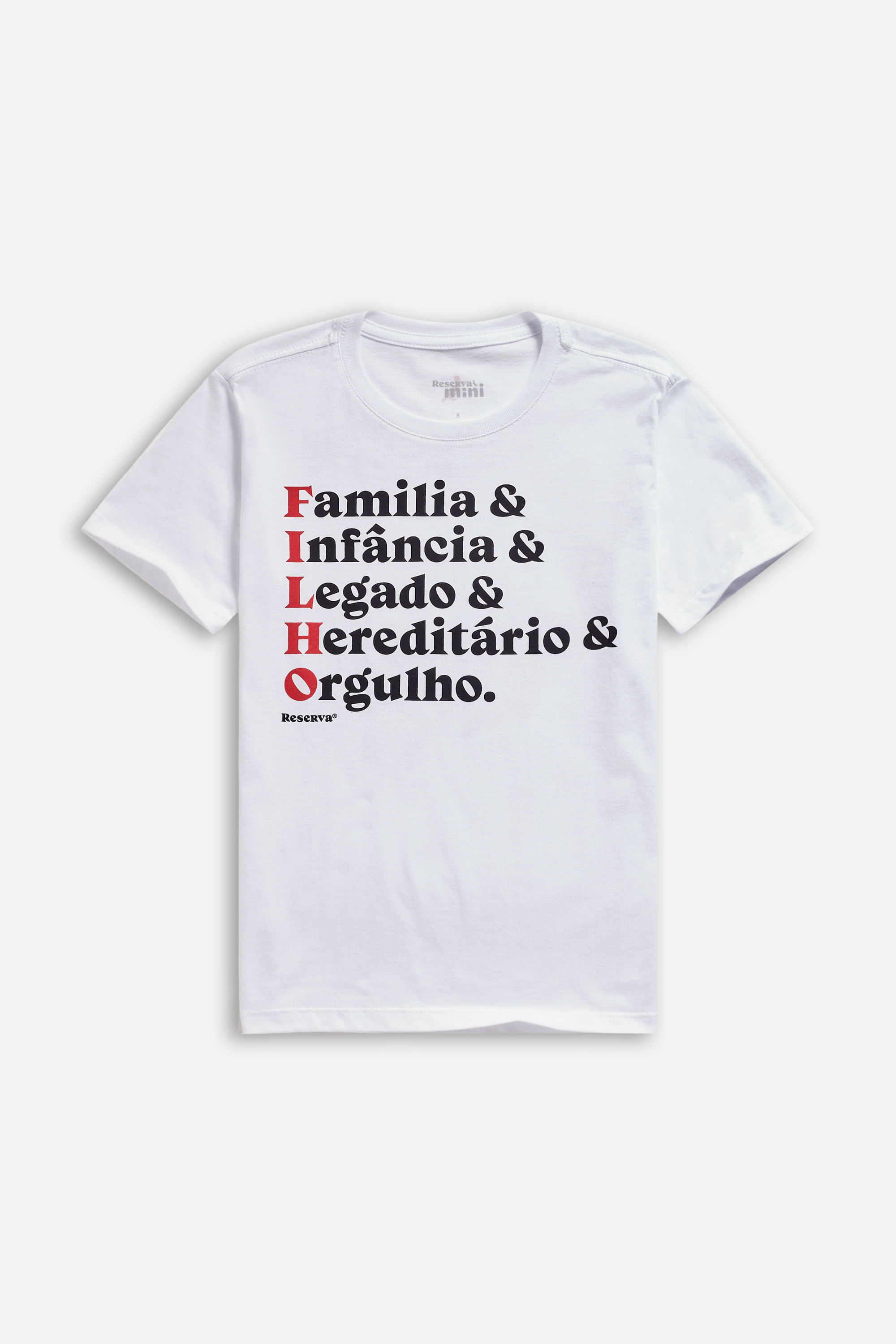 Todo o amor de um filho pelo pai é representado na Camiseta Mini Estampa Filho Orgulho &&&! Feita 100% em algodão, possui manga curta e gola redonda. Sua estampa traz a palavra FILHO em destaque, com cada letra formando outras palavras, tendo como frase “Família & Infância & Legado & Hereditário & Orgulho”. Use combinando com a sua Camiseta Estampa Pai Puro Amor Infinito. Combine com calças ou bermudas, tênis ou chinelos. Comprando esta peça, você viabiliza cinco pratos de comida através do nosso Programa 1P5P. Camiseta produzida eticamente no Brasil.