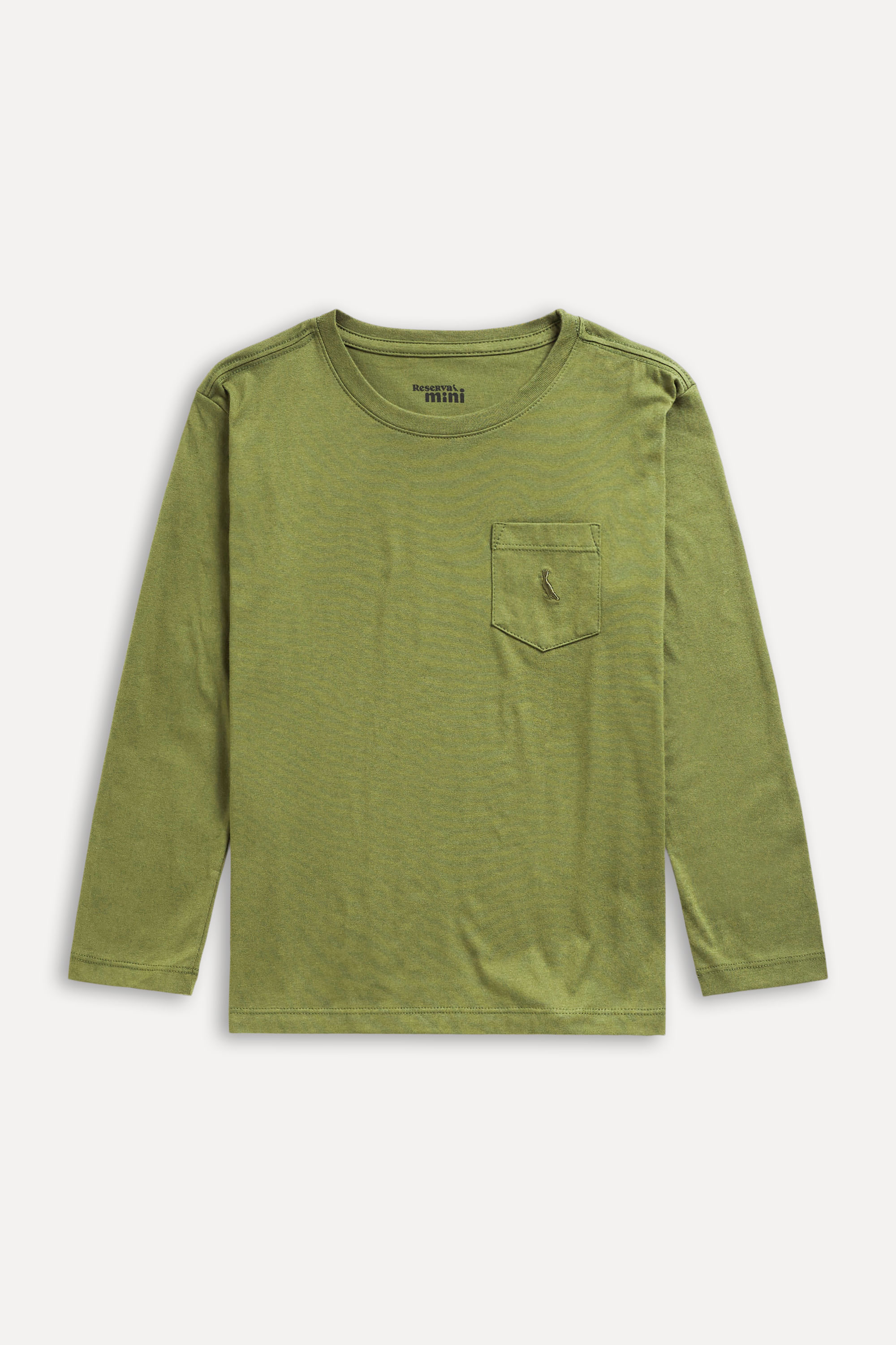 Camiseta manga longa com bolso da linha infantil Reserva Mini. O modelo básico é em malha 100% algodão, com manga longa, bolso e pica pau bordado no tom da malha. Peça curinga da Reserva Mini, pra combinar com o armário inteiro do seu mini. Produzido eticamente no Brasil. Comprando esta peça, você complementa cinco pratos de comida através do nosso programa 1P=5P.