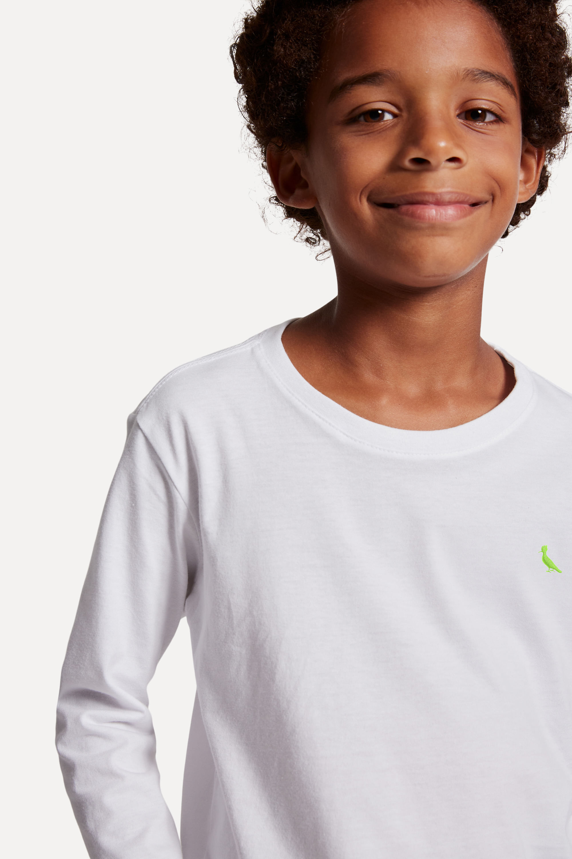Camiseta Ml Mini Pica Pau Bordado Neon. O modelo básico é em malha 100% algodão, com manga longa e estampada. Estampa básica e divertida que combina com o seu mini. Produzido eticamente no Brasil. Comprando esta peça, você viabiliza cinco pratos de comida através do nosso programa 1P5P. Produção sob demanda.