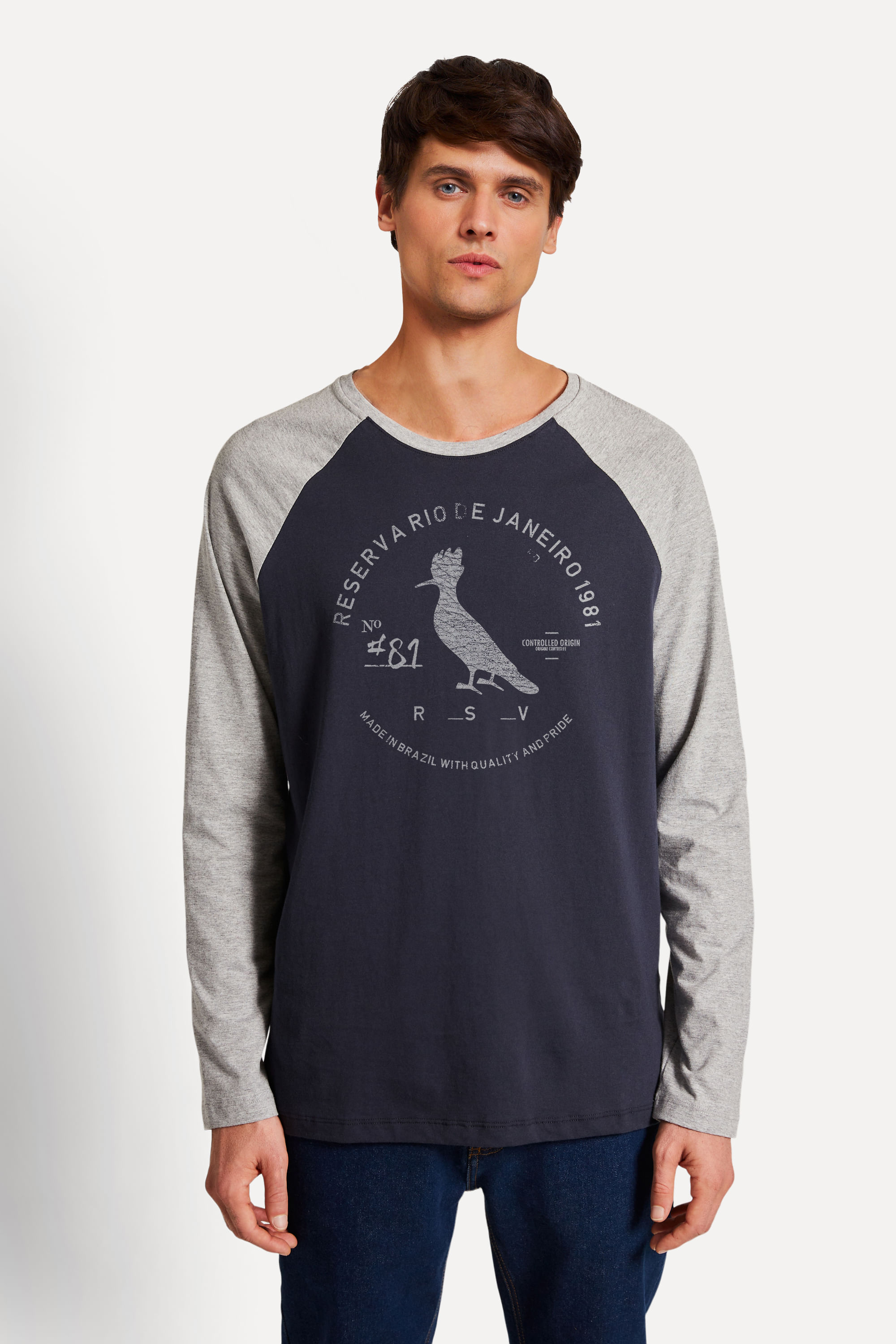 CAMISETA ML RAGLAN BICOLOR CARIMBO