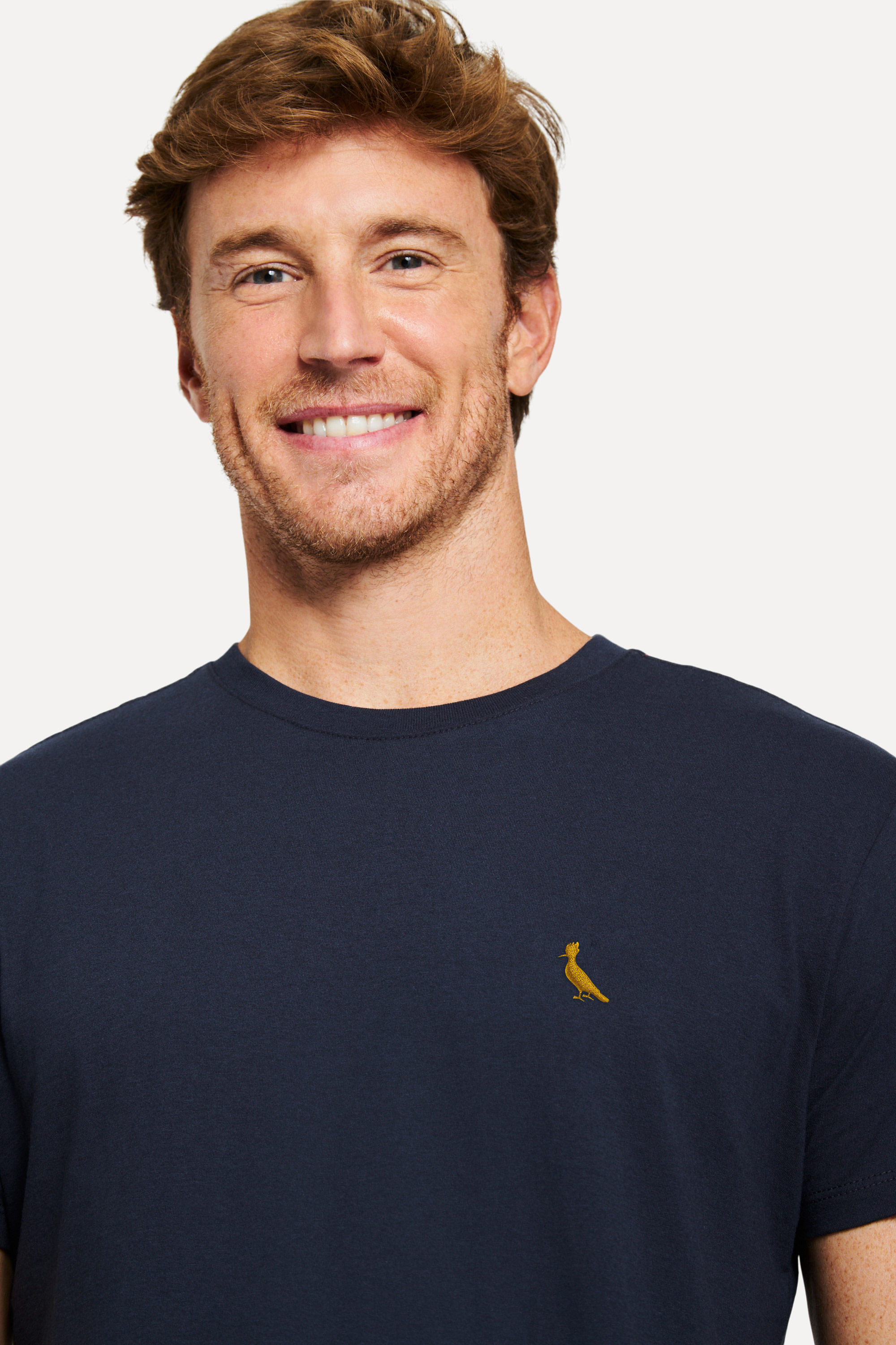 Camiseta básica 100% algodão com pica-pau bordado. Produzido éticamente no Brasil. Comprando esta peça, você viabiliza cinco pratos de comida através do nosso programa 1P5P. Produção sob demanda.
