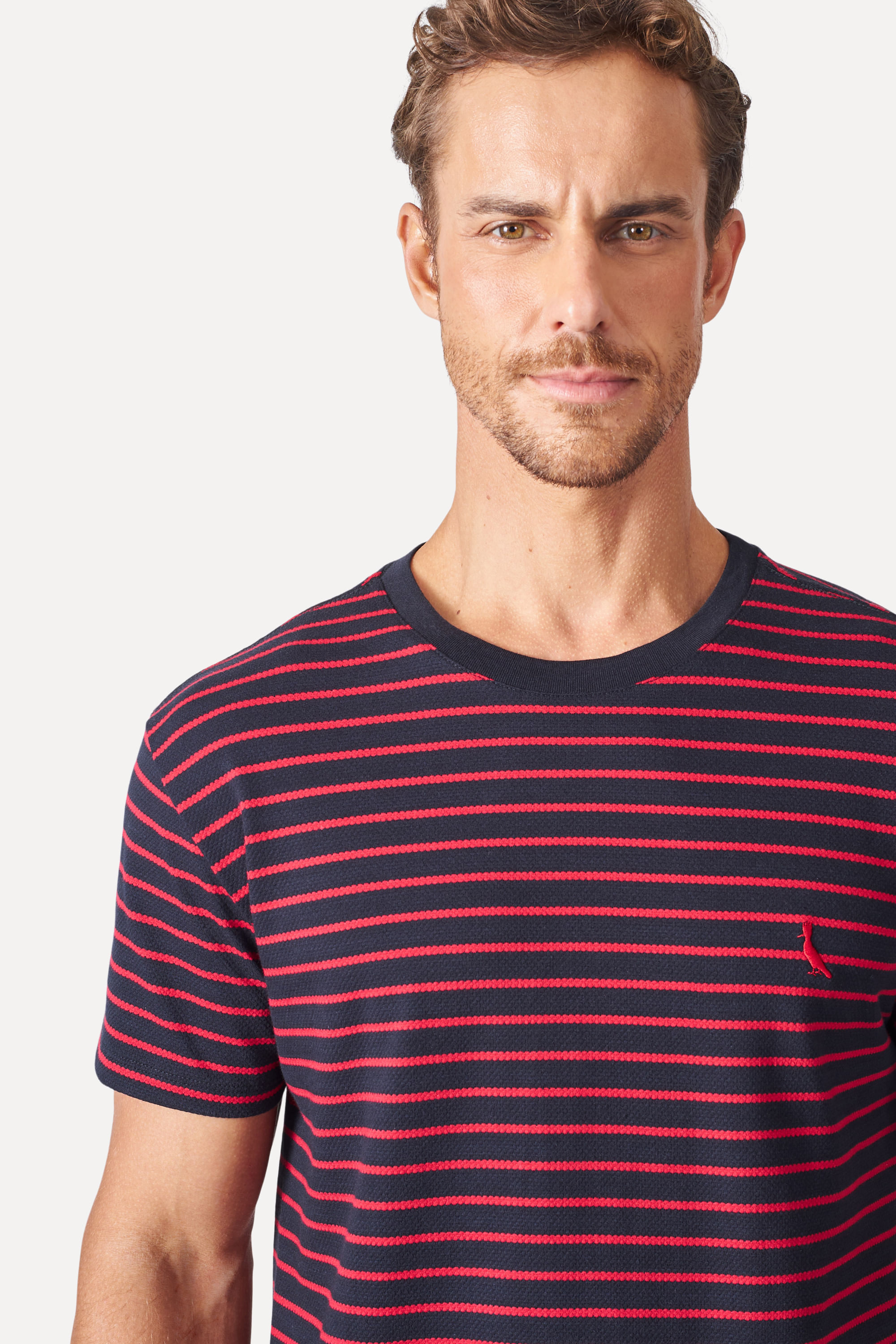 A Camiseta Regular MC Listrado Trabalhado é a escolha perfeita para o inverno 24! Em malha texturizada com listras, possui gola redonda, etiqueta interna e bandeira lateral Reserva e nosso clássico pica-pau bordado no peito. Use essa camiseta em diversas ocasiões, desde um passeio descontraído até um encontro com os amigos. O modelo tem 1,89 de altura, 103 de tórax e veste 42. Comprando esta peça, você viabiliza cinco pratos de comida através do nosso Programa 1P5P. Camiseta produzida eticamente no Brasil.