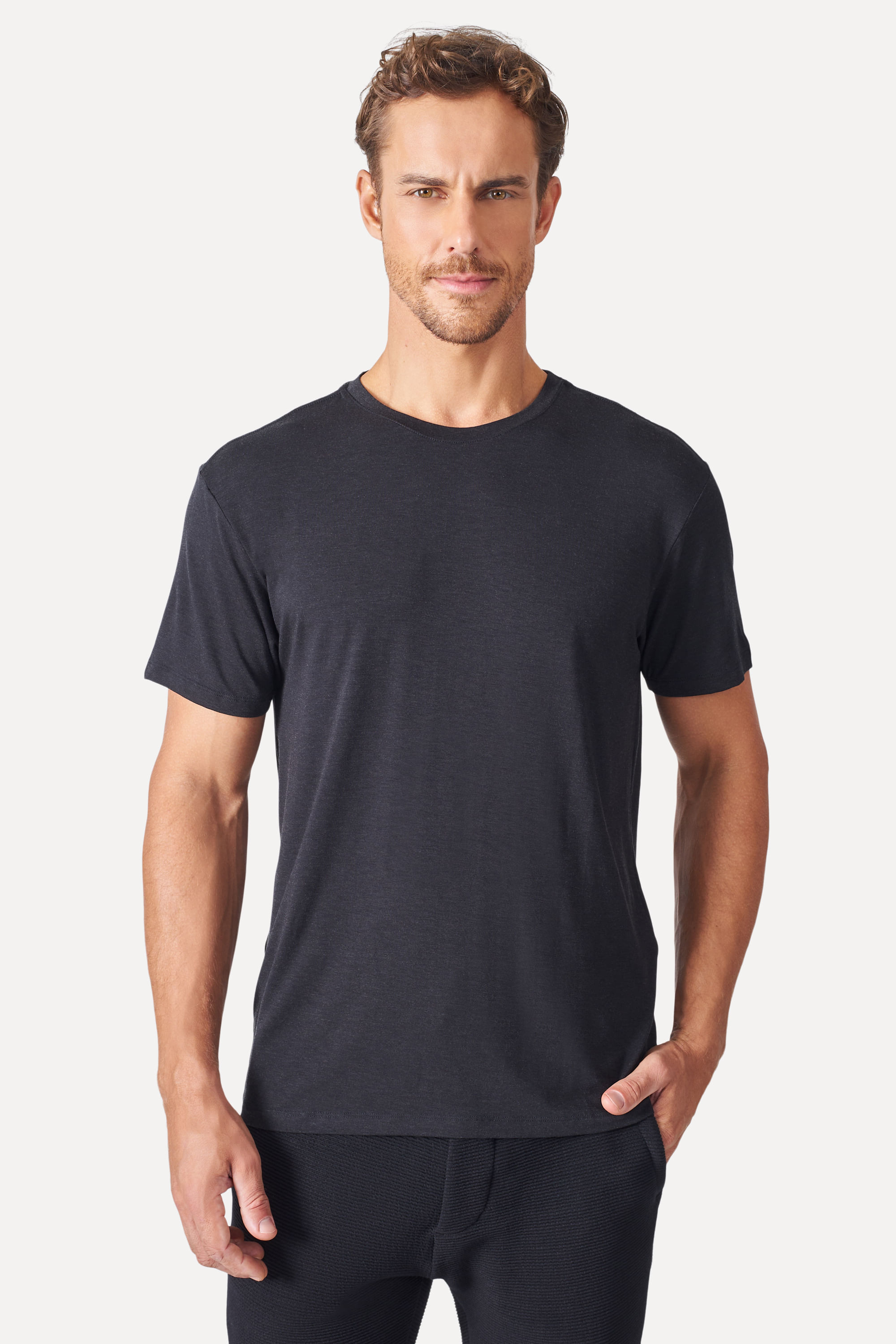 Trazendo o melhor do conforto e tecnologia para o seu dia-a-dia, a Camiseta Regular Work Tech é sua nova peça preferida. A mistura das fibras de viscose e poliamida na composição da sua malha faze a peça ser respirável, leve e macia. Ela possui excelente absorção do suor, por isso é extremamente indicada para os dias de calor, ou para aqueles dias corridos entre o trabalho e o happy hour. Por ser leve e ter secagem rápida, é também ideal para te acompanhar em viagens, sendo uma opção para looks casuais ou formais. Possui modelagem regular de caimento reto, gola redonda de ribana, mangas curtas e clássico pica-pau bordado no peito. O modelo tem 1,89 de altura, 103 de tórax e veste 42. Comprando esta peça, você viabiliza cinco pratos de comida através do nosso Programa 1P5P. Camiseta produzida eticamente no Brasil.