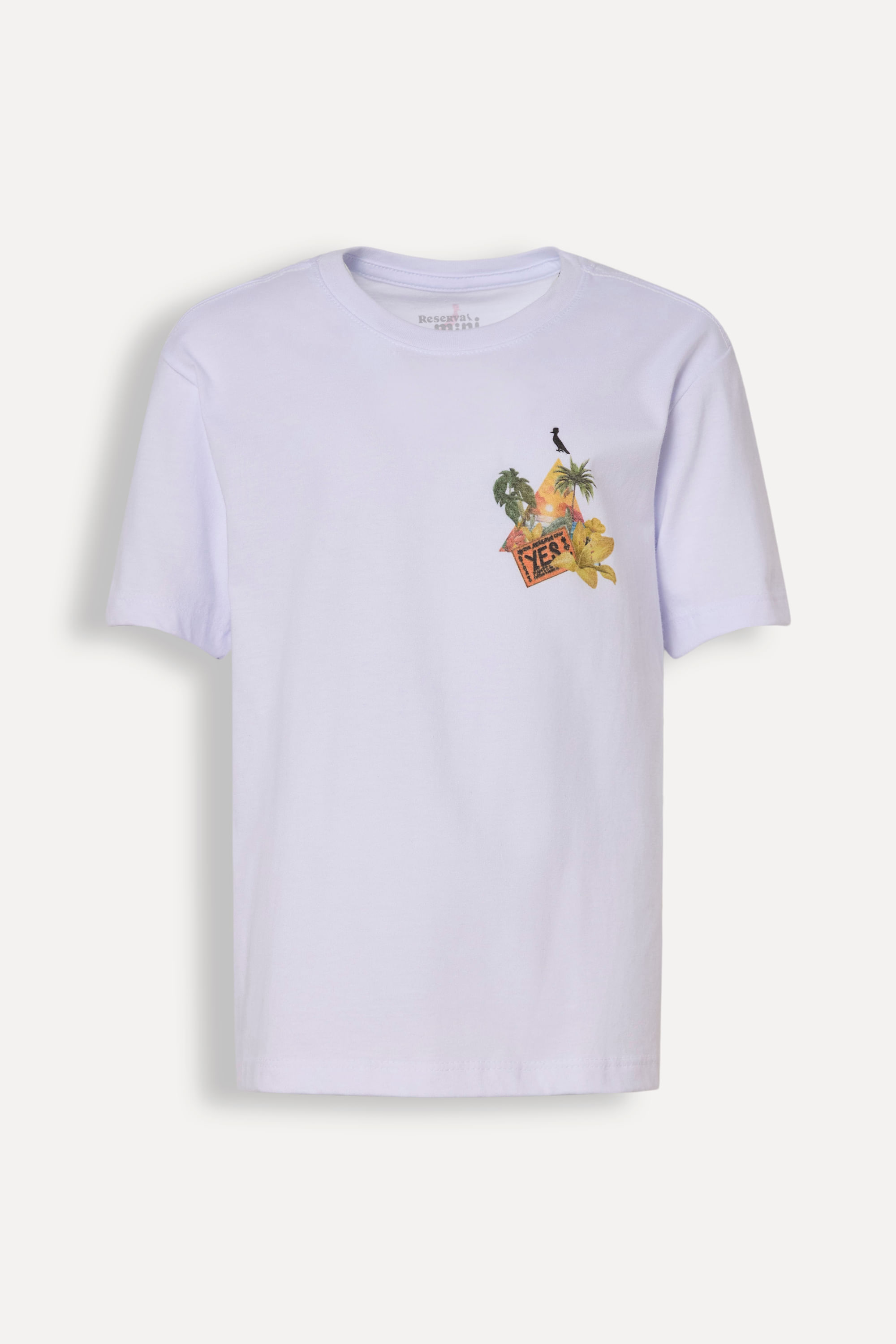 A Camiseta Reserva Mini Yes veio pra mostrar que dá pra ter estilo desde pequeno! Feita em algodão de alta qualidade, garante muito conforto. Possui manga curta e gola redonda. Sua estampa exclusiva da collab, em versão menor no peito e maior nas costas, traz uma paisagem tropical, com o logo da Yes Brazil e nosso pica-pau vermelho. Combine com calças ou bermudas, tênis ou chinelos. Comprando esta peça, você viabiliza cinco pratos de comida através do nosso Programa 1P5P. Camiseta produzida eticamente no Brasil.