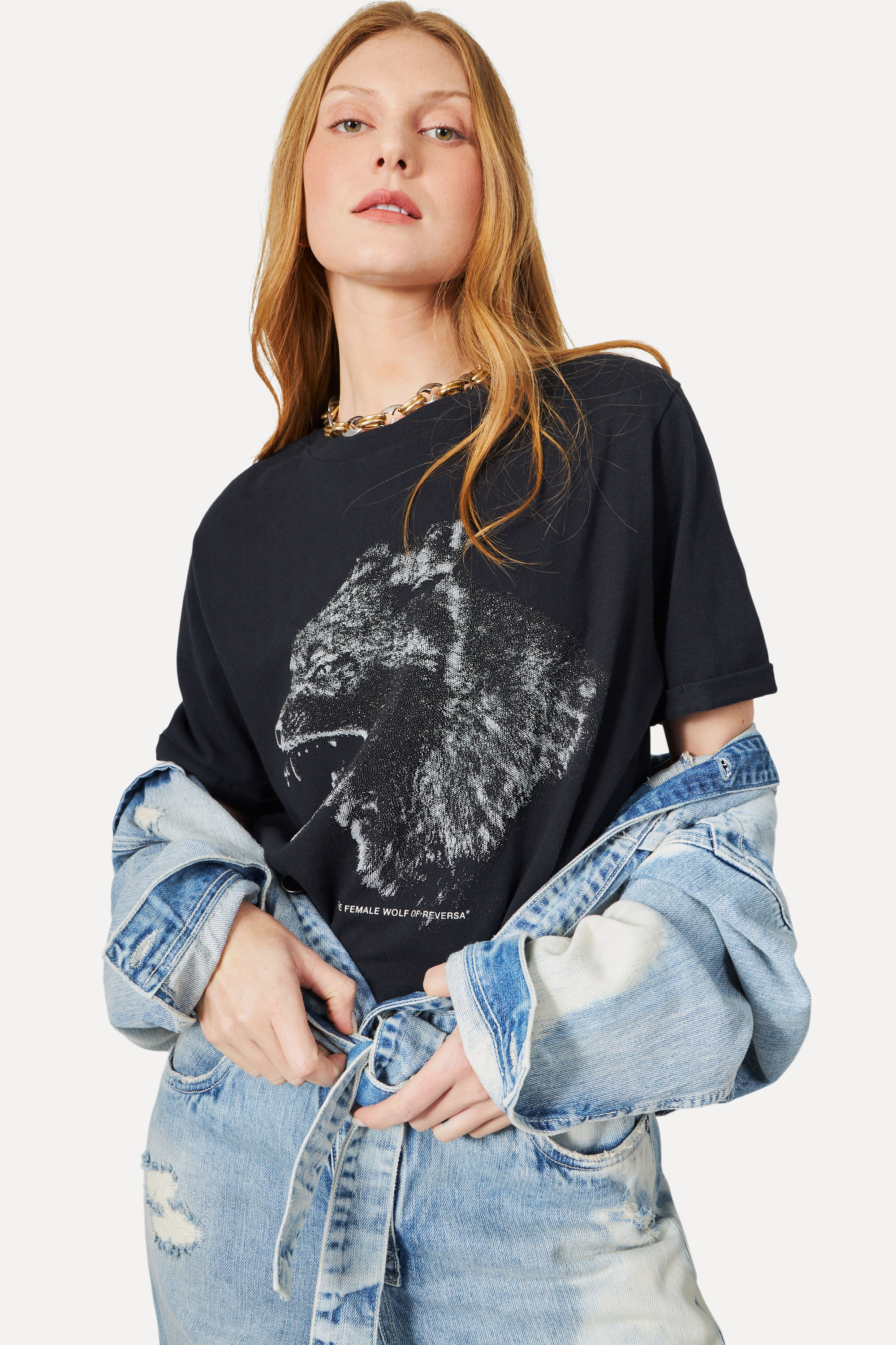 A Camiseta Silk Lobo é perfeita para o seu closet de inverno! Feita em malha de algodão, possui modelagem ampla. Seu destaque vai para o incrível silk de lobo, que traz um toque de personalidade e autenticidade ao visual. É uma peça super versátil e pode ser usada em diversas ocasiões, seja para um passeio descontraído ou até mesmo para uma saída à noite. A modelo tem 1,77 de altura, 74 de busto e veste 36. Comprando esta peça, você viabiliza cinco pratos de comida através do nosso Programa 1P5P. Camiseta produzida eticamente no Brasil.