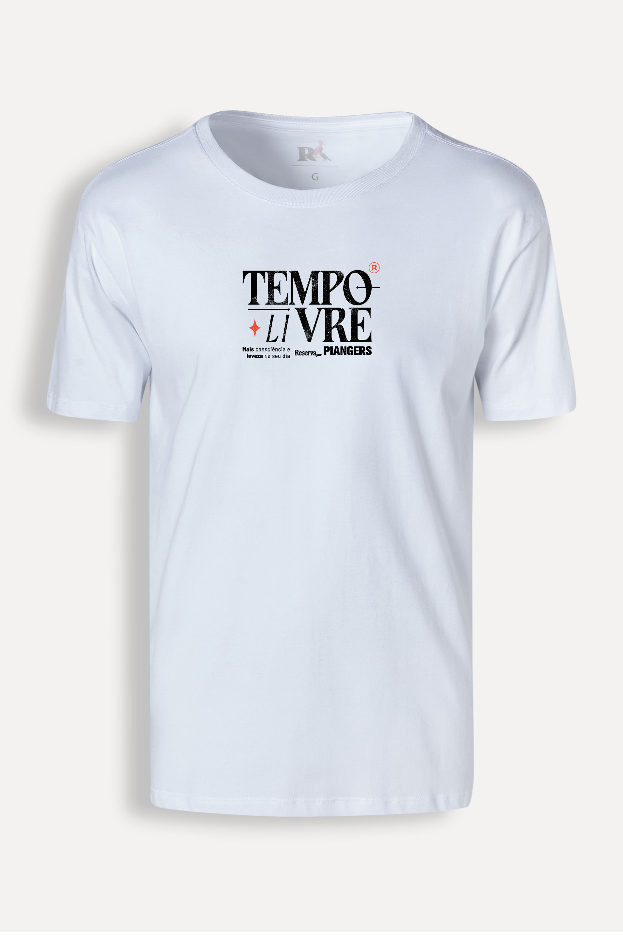 Escolha ser feliz! Conheça a Camiseta Tempo Livre, da collab Reserva + Piangers! Feita 100% em algodão, possui manga curta, gola redonda e estampa escrito “Tempo Livre: Mais consciência e leveza no seu dia”, com a assinatura da collab. Disponível em três cores, escolha a que melhor combina com seu estilo! Comprando esta peça, você viabiliza cinco pratos de comida através do nosso Programa 1P5P. Camiseta produzida eticamente no Brasil.