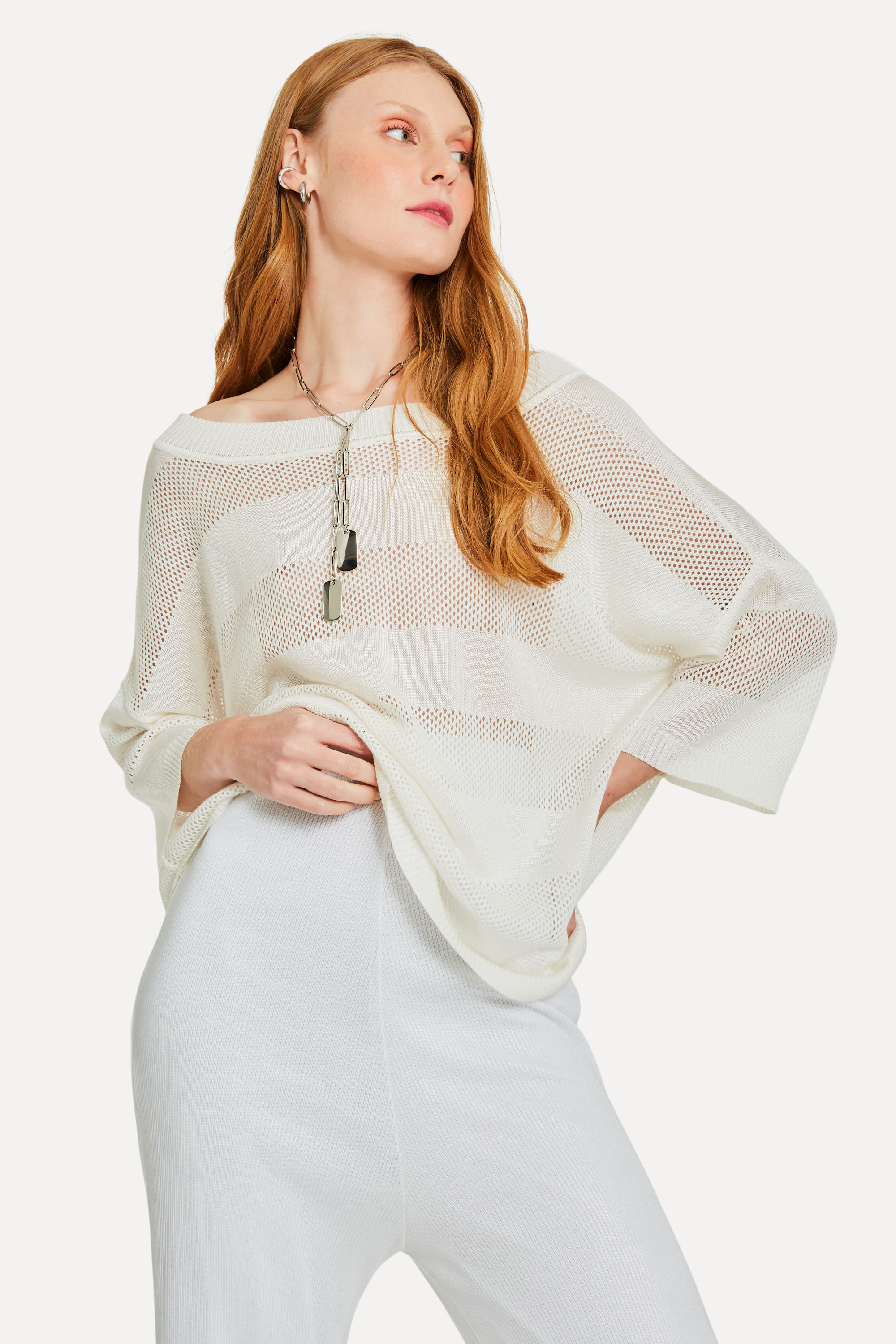 A Camiseta Tricot Listras é a peça perfeita para o verão 24! Com uma modelagem incrível e um tecido super leve e confortável, essa camiseta vai te acompanhar em todos os momentos. As listras dão um toque de estilo e modernidade ao visual, enquanto a cor neutra combina com tudo. A sugestão de uso é combinar a camiseta com uma calça jeans e um tênis para um look casual e despojado. Além disso, a Camiseta Tricot Listras se adapta perfeitamente ao corpo, valorizando suas curvas. A modelo tem 1,77 de altura, 74 de busto e veste 36. Garanta já a sua e arrase nesse verão! Comprando esta peça, você viabiliza cinco pratos de comida através do nosso Programa 1P5P.