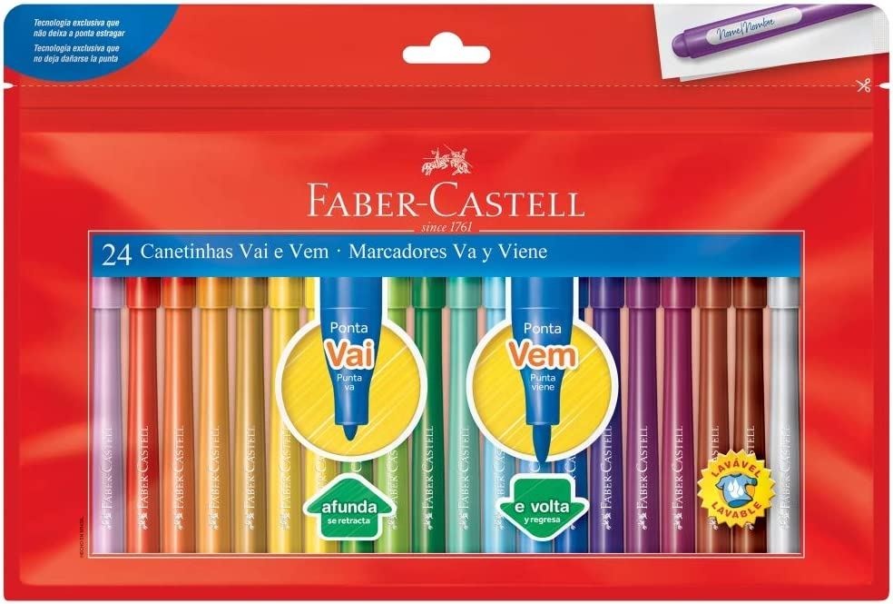 Esse produto também é conhecido como: Canetinha Hidrocor, Caneta de Colorir ou Canetinha Escolar<br /> Sistema exclusivo que protege a ponta contra impactos, garantindo maior durabilidade<br /> Lavável<br /> Estojo com 24 cores<br /> Tecnologia exclusiva que não deixa a ponta estragar