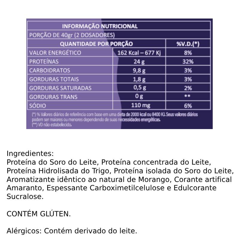 <p>O <strong>Caniblend Protein</strong>, sabor <strong>morango</strong>, da <strong>Canibal </strong>Inc é um suplemento proteico elaborado com um blend de proteínas, nele contém whey protein concentrado e isolado e a proteína hidrolisada do trigo, garantindo assim uma fórmula rica em aminoácidos essenciais. Cada dose fornece 24g de proteínas. </p>_x000D_ <h2><strong>Sobre os ingredientes:</strong></h2>_x000D_ <ul>_x000D_ <li>Whey protein concentrado (WPC): proteína extraída do soro do leite por processo de filtragem, contribui com o ganho e manutenção de massa muscular.</li>_x000D_ <li>Whey protein isolado (WPI): passa por um processo minucioso de filtragem, eliminando a lactose e a caseína, e concentrando as proteínas. </li>_x000D_ </ul>_x000D_ <h2><strong>Sugestão de consumo:</strong></h2>_x000D_ <p>Diluir 2 dosadores (40g) em 200ml de água, ou conforme orientação do médico ou nutricionista.</p>_x000D_ <h2><strong>Motivos para escolher o produto:</strong></h2>_x000D_ <ul>_x000D_ <li>_x000D_ <p>Contém BCAA e glutamina;</p>_x000D_ </li>_x000D_ <li>_x000D_ <p>Zero adição de açúcares;</p>_x000D_ </li>_x000D_ <li>_x000D_ <p>Fornece 24g de proteínas por dose;</p>_x000D_ </li>_x000D_ <li>_x000D_ <p>Feito com whey protein concentrado e isolado;</p>_x000D_ </li>_x000D_ <li>_x000D_ <p>Isento de soja.</p>_x000D_ </li>_x000D_ </ul>_x000D_ <h2><strong>A Marca</strong></h2>_x000D_ <p>A Canibal Inc foi fundada no ano de 2017 com a missão de revolucionar o mercado de suplementos alimentares, a empresa trabalha com produtos focados em bem-estar, emagrecimento, ganho de força e aumento de massa muscular. Cada produto é desenvolvido com base em pesquisas e uso de matéria prima premium, trazendo ciência aliada a alta performance.</p>