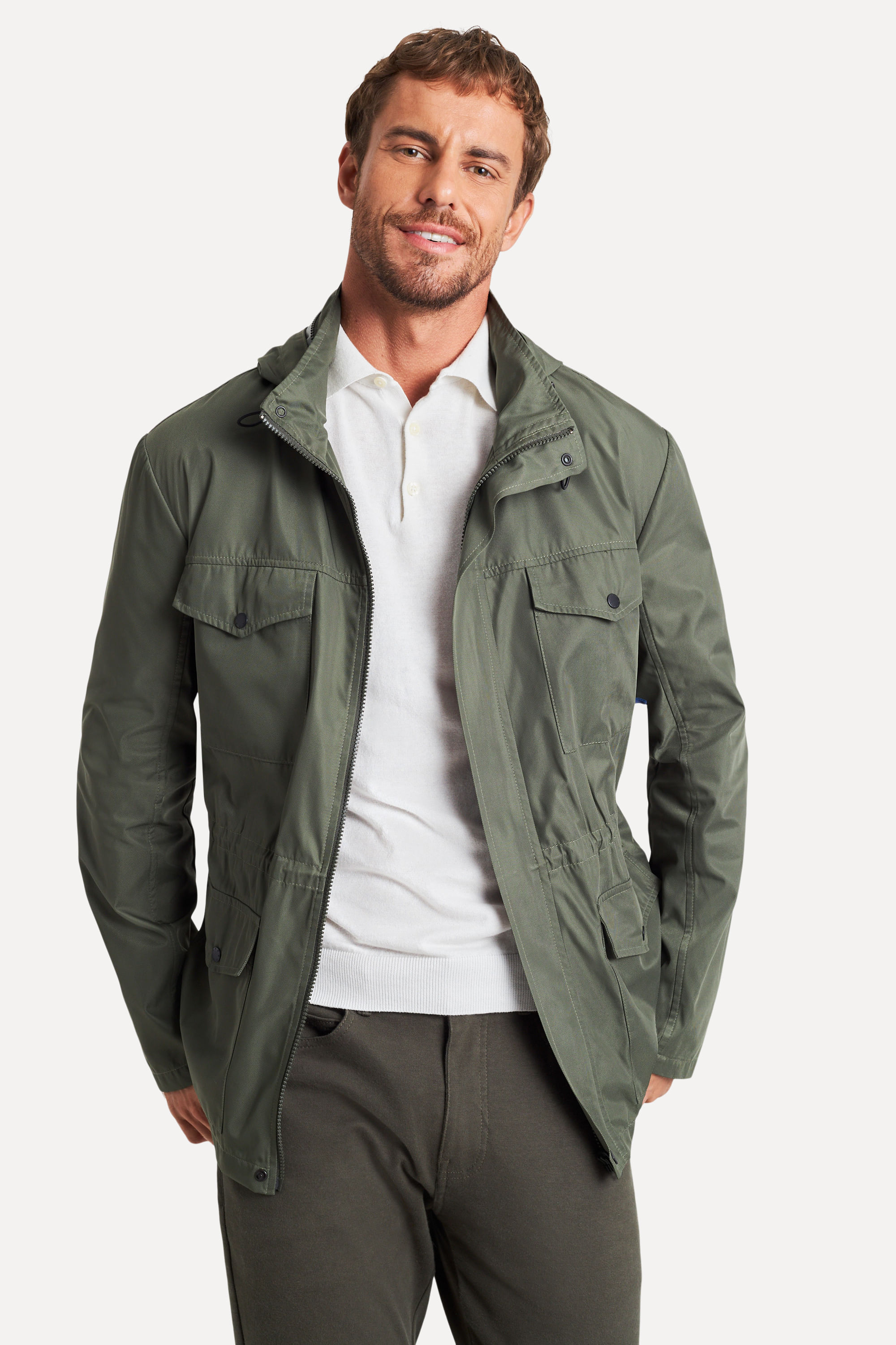 A Capa de Chuva da Reserva é perfeita para te proteger nos dias chuvosos com muito estilo e conforto. Feita em poliéster impermeável, ela garante que você fique seco mesmo nos dias mais molhados. Sua modelagem é similar a uma parka, com regulagem na cintura feita por elástico interno, proporcionando um caimento perfeito ao seu corpo. Além disso, possui bolsos superiores e inferiores com fechamento por botões de pressão, para você guardar seus pertences com segurança. A peça conta ainda com capuz escondido dentro da gola por um zíper, oferecendo duas opções de uso. A pala nas costas é aberta e possui uma parte interna com tela para respiração, garantindo conforto térmico mesmo em dias mais abafados. E para uma maior ventilação, a capa de chuva possui dois ilhoses respiradores abaixo da axila. Com a Capa de Chuva da Reserva, você estará sempre preparado para encarar qualquer chuva sem perder o estilo.O modelo tem 1,89 de altura, 103 de tórax e veste 42. Comprando esta peça, você viabiliza cinco pratos de comida através do nosso Programa 1P5P. Produto produzido eticamente no Brasil.