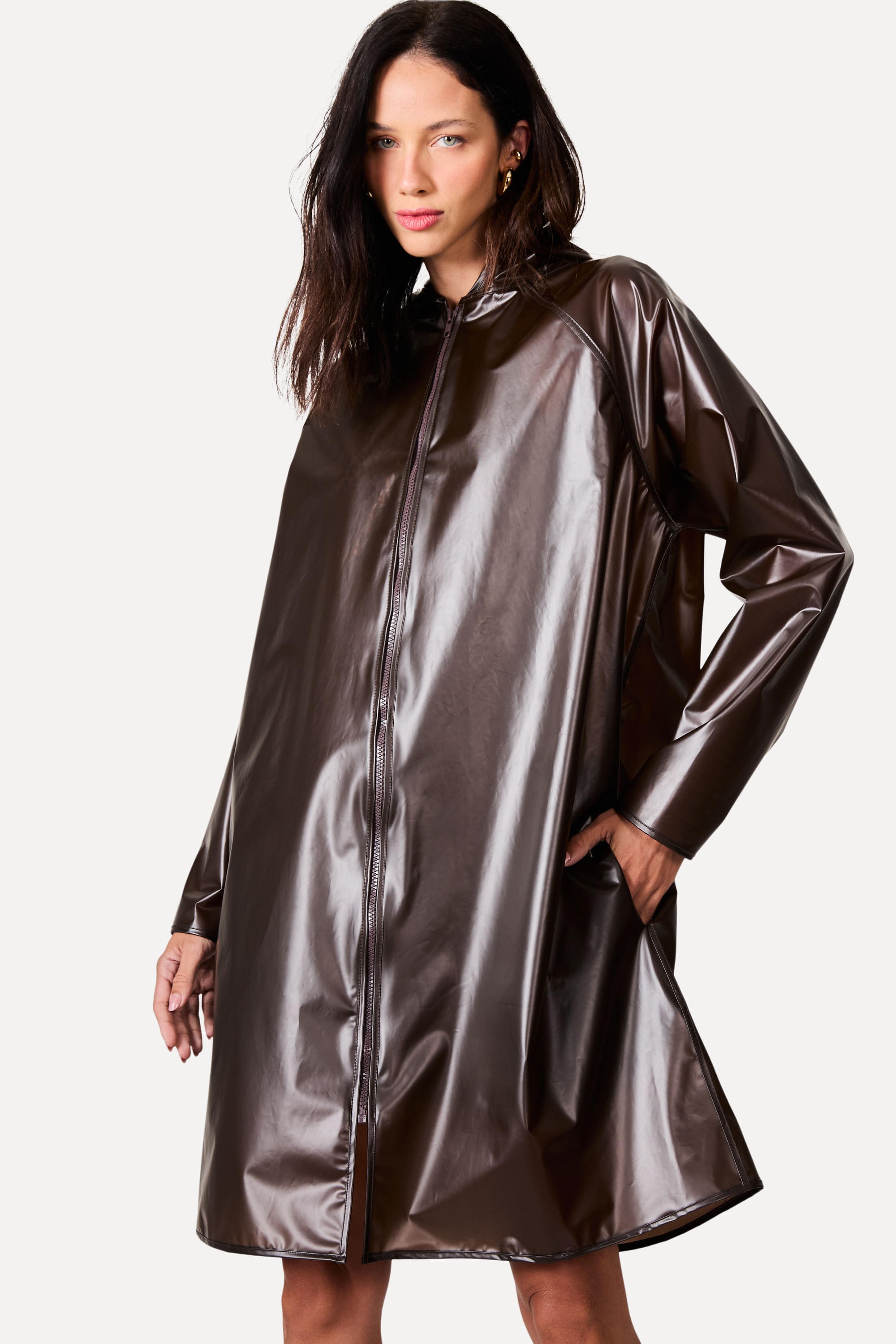 Arrase nos principais festivais de música com a Capa De Chuva Rock, da coleção Rock Glam por Carol Sampaio! Perfeita para te proteger das chuvas, ela também foi pensada para compor seu look. Possui tecido impermeável, manga longa, capuz e fechamento frontal por zíper. A modelo tem 1,76 de altura, 85 de busto e veste 36. Comprando esta peça, você viabiliza cinco pratos de comida através do nosso Programa 1P5P. Capa de chuva produzida eticamente no Brasil.