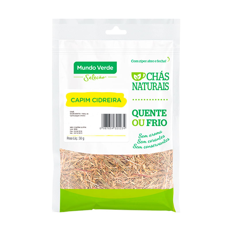 <p>O <strong>Capim Cidreira Mundo Verde Seleção 30g </strong>é feito do capim cidreira desidratado. É <strong>100% natural</strong>, podendo ser consumido quente ou frio.</p> Sugestão de consumo: <p>Acrescentar 1 colher de sobremesa em 1 xícara de chá de água quente, abafar por 10 minutos. Coar e consumir em seguida. Pode ser consumido quente ou frio em qualquer momento do dia.</p> Motivos para escolher o produto: <ul> <li> <p>Sem aroma artificial</p> </li> <li> <p>Sem conservantes</p> </li> <li> <p>Sem corantes</p> </li> <li> <p>Não contém Glúten</p> </li> </ul> Sobre a marca: <p>A<strong> </strong><strong>Mundo Verde Seleção</strong> é uma linha de produtos para quem quer ter uma vida mais saudável e gostosa. A marca quer ajudar a colocar essas escolhas em prática. A paixão e conhecimento pelos alimentos, nutrientes, aromas e sabores permitem a seleção das melhores opções saudáveis para qualquer ocasião. Conheça a linha completa Mundo Verde Seleção, com inúmeros produtos saudáveis e gostosos para facilitar seu dia a dia.</p>