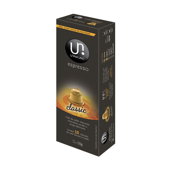 Informações sobre o produto:<br>_x000D_ A Cápsula Utam Uno Classic, da Café Utam, é uma cápsula de café baseada em grãos moídos de torração média, com uma mistura próprio da marca, desenvolvida com o objetivo de fazer parte da rotina do dia-a-dia e dos momentos especiais.<br>_x000D_ <br>_x000D_ Recomendações para consumo:<br>_x000D_ Além da máquina limpa e regulada, prefira utilizar água filtrada. Ao inserir uma cápsula na máquina e selecione a extração.<br>_x000D_ <br>_x000D_ A medida ideal para ristretto é 20 ml e para expresso 35 ml.<br>_x000D_ <br>_x000D_ Motivos para escolher esse produto?<br>_x000D_ Produto 100% natural<br>_x000D_ De fácil manuseio e utilização<br>_x000D_ Sem aromatizante artificial<br>_x000D_ Sem adoçantes artificiais<br>_x000D_ Sem açúcar<br>_x000D_ Sem glúten<br>_x000D_ Sem gorduras trans<br>_x000D_ Vegetariano<br>_x000D_ Não contém lactose<br>_x000D_ Informações sobre a marca<br>_x000D_ Desde 1969, a Café Utam está presente no mercado cafeeiro oferecendo além de deliciosas bebidas, momentos especiais. Ao longo desse tempo, ela se estabeleceu como uma das empresas de maior know how e representatividade dentro do ramo. Pensando sempre no consumidor, a empresa investe contínua e fortemente em tecnologia e inovação em toda a sua produção. O resultado são produtos de altíssima qualidade, que agradam especialmente o paladar e o coração dos brasileiros.